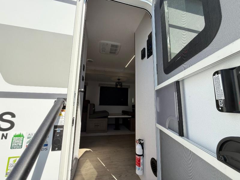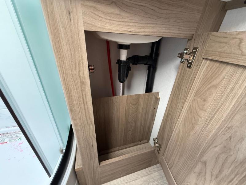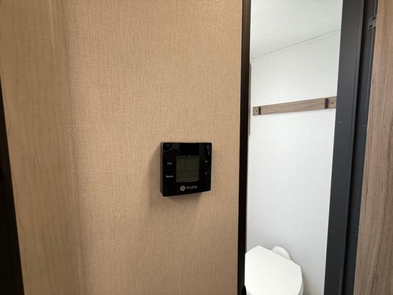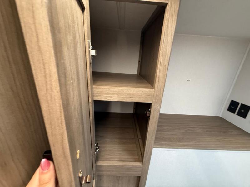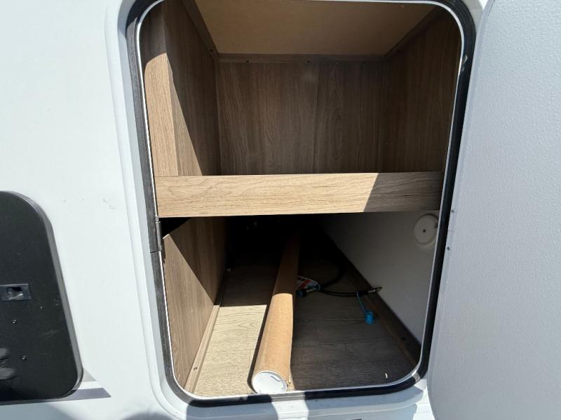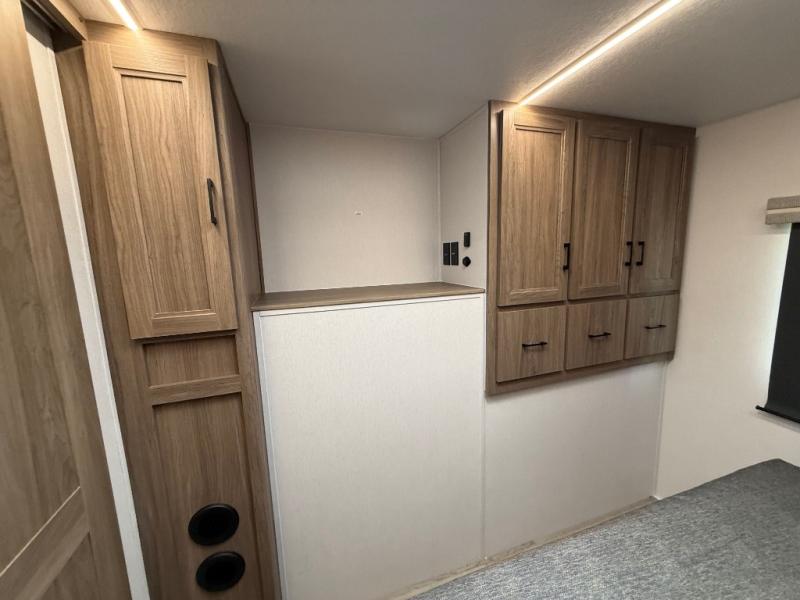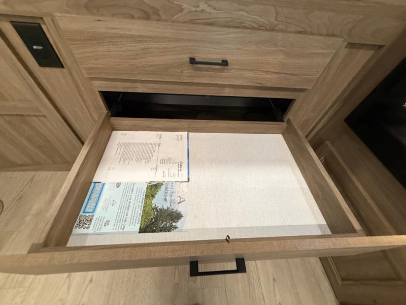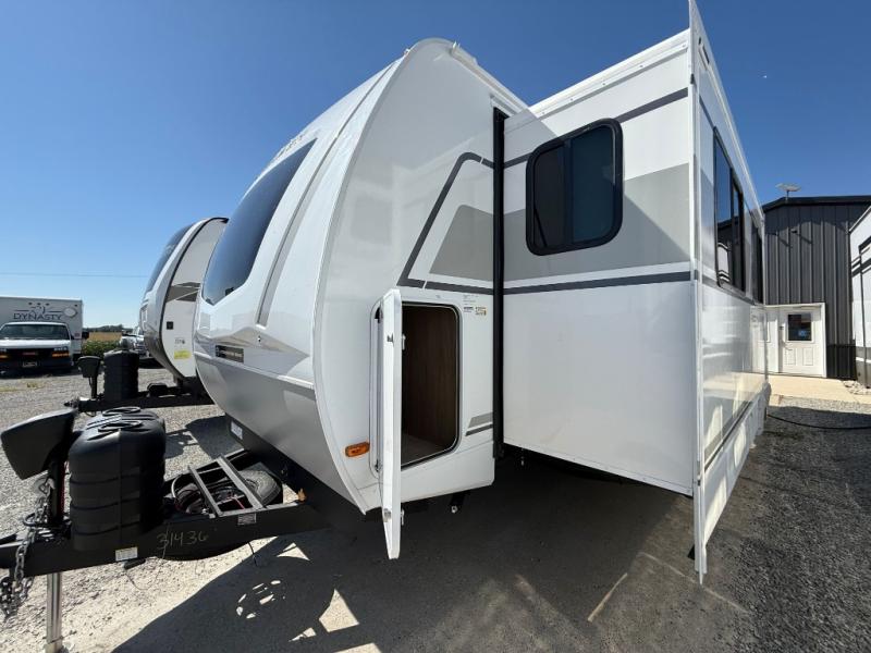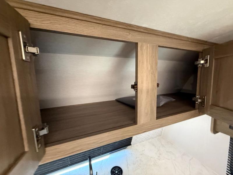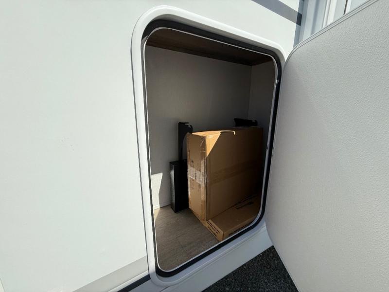 Comfort comes easy in this front kitchen travel trailer for four! You will love the rear master bedroom with its king bed slide out, spacious wardrobe, and a private entrance into the dual entry bath. There is a sofa that sits directly across from the fireplace and entertainment center, or you can choose the optional theater seat or optional hide-a-bed sofa in place of the standard sofa. The front kitchen features tons of counter space, an 8 cu. ft. double door refrigerator, plus a large pantry for dry good and snacks. There is also a pantry/closet just as you enter the trailer that will be perfect for shoes and jackets!