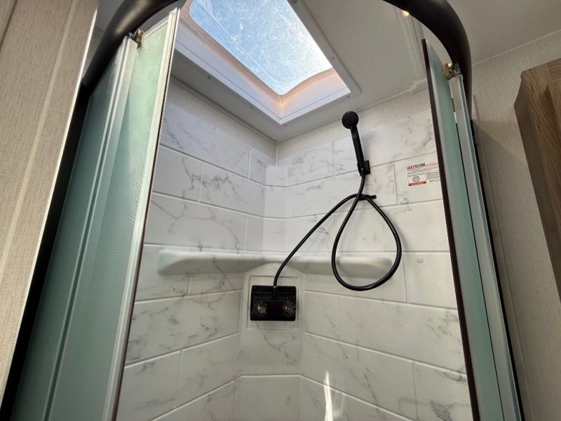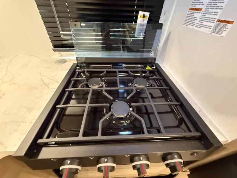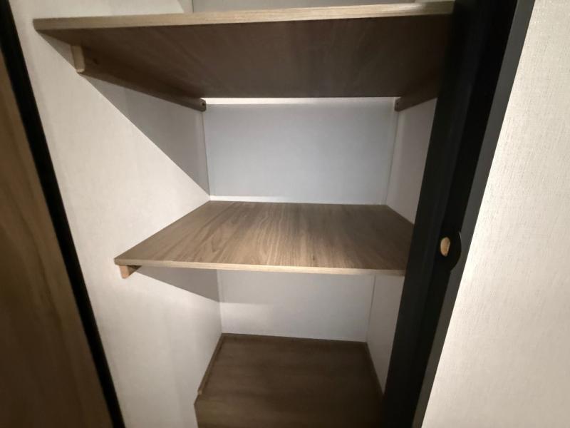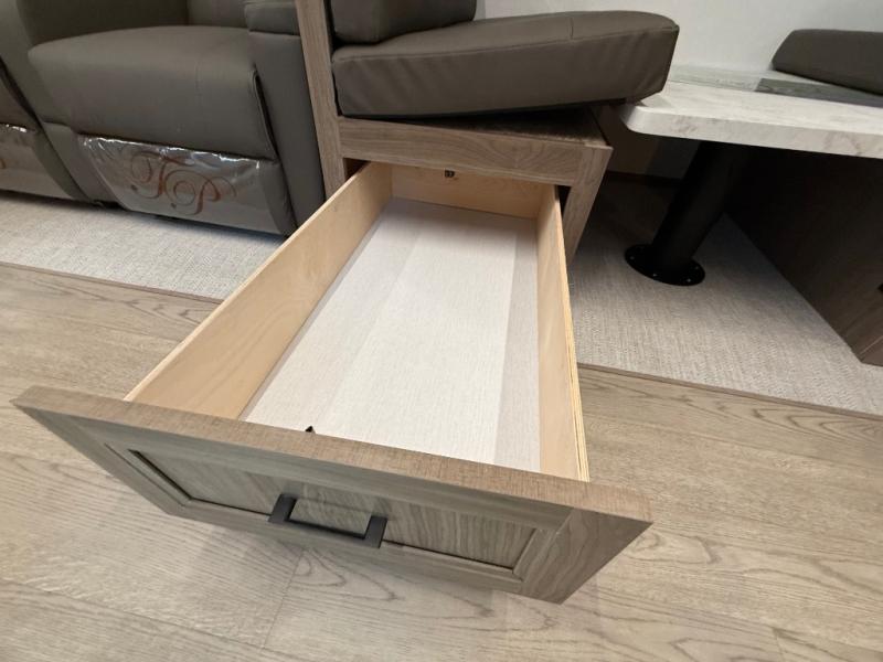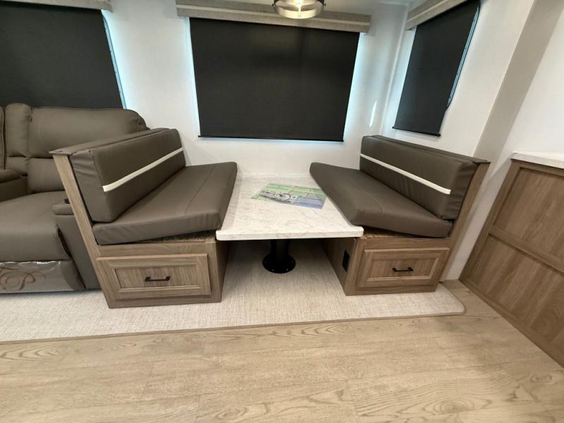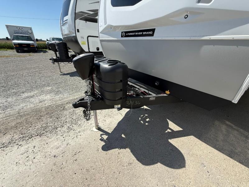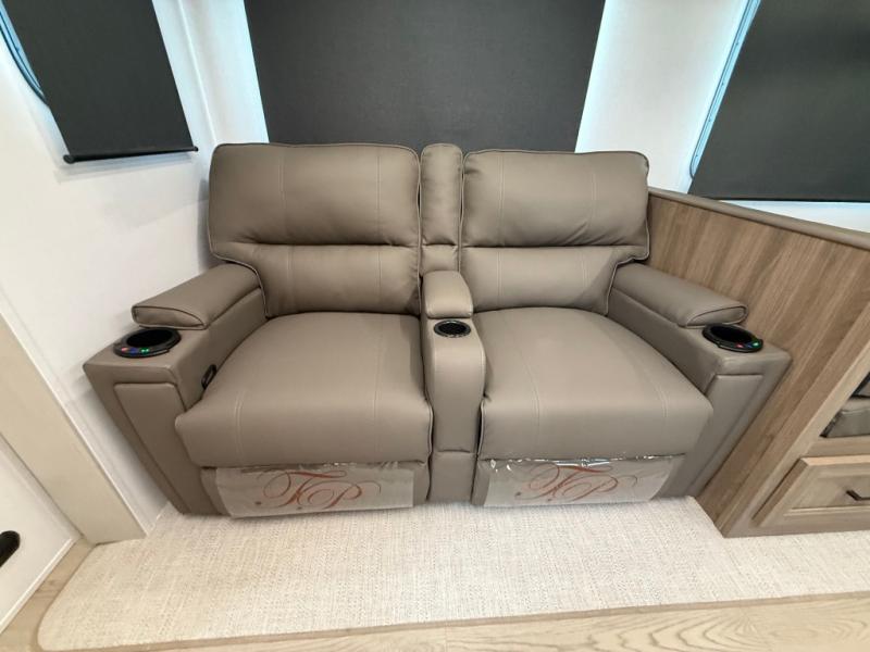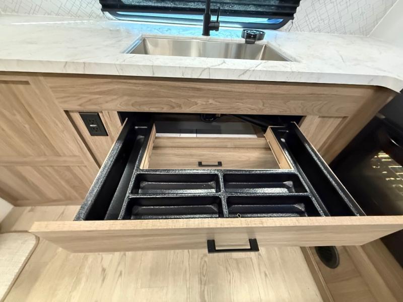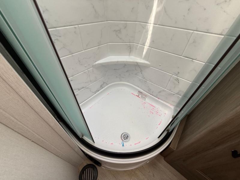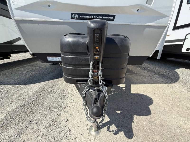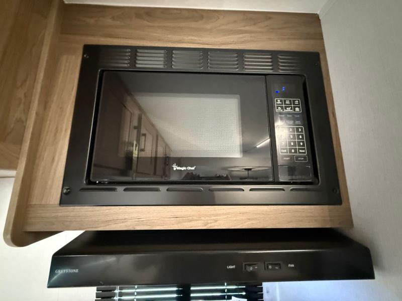 Comfort comes easy in this front kitchen travel trailer for four! You will love the rear master bedroom with its king bed slide out, spacious wardrobe, and a private entrance into the dual entry bath. There is a sofa that sits directly across from the fireplace and entertainment center, or you can choose the optional theater seat or optional hide-a-bed sofa in place of the standard sofa. The front kitchen features tons of counter space, an 8 cu. ft. double door refrigerator, plus a large pantry for dry good and snacks. There is also a pantry/closet just as you enter the trailer that will be perfect for shoes and jackets!