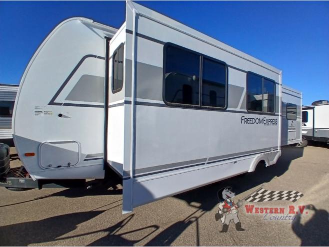 With any Freedom Express Ultra Lite travel trailer by Coachmen you will appreciate quality construction materials, such as vacuum bonded walls with Azdel composite, a 3/4 gel coated fiberglass cap with an automotive glass windshield, and a heated enclosed underbelly. Each model also features Tufflex PVC roofing, front rock guard, and E-Z Lube axles for smooth towing. Inside, you'll find kitchen backsplash, hidden hinge cabinetry, and wear-resistant vinyl flooring throughout. The power tongue jack included with the Ultra Lite Express Package will make set-up a breeze, and each model includes back-up camera prep and they are Freedom solar ready if you plan to go off-grid. Enjoy lightweight camping with a Freedom Express Ultra Lite travel trailer today!