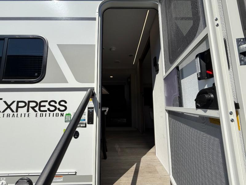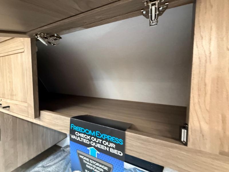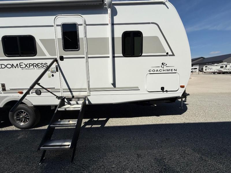 With any Freedom Express Ultra Lite travel trailer by Coachmen you will appreciate quality construction materials, such as vacuum bonded walls with Azdel composite, a 3/4 gel coated fiberglass cap with an automotive glass windshield, and a heated enclosed underbelly. Each model also features Tufflex PVC roofing, front rock guard, and E-Z Lube axles for smooth towing. Inside, you'll find kitchen backsplash, hidden hinge cabinetry, and wear-resistant vinyl flooring throughout. The power tongue jack included with the Ultra Lite Express Package will make set-up a breeze, and each model includes back-up camera prep and they are Freedom solar ready if you plan to go off-grid. Enjoy lightweight camping with a Freedom Express Ultra Lite travel trailer today!