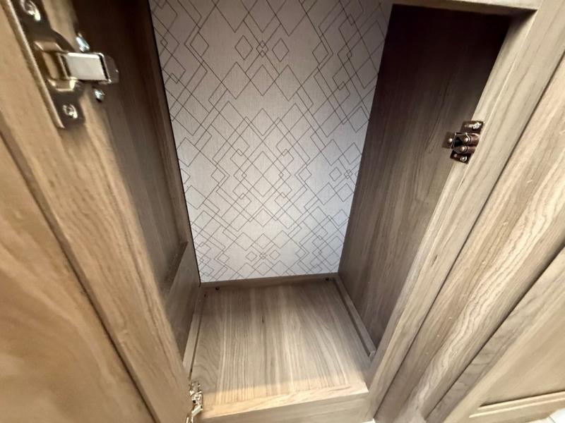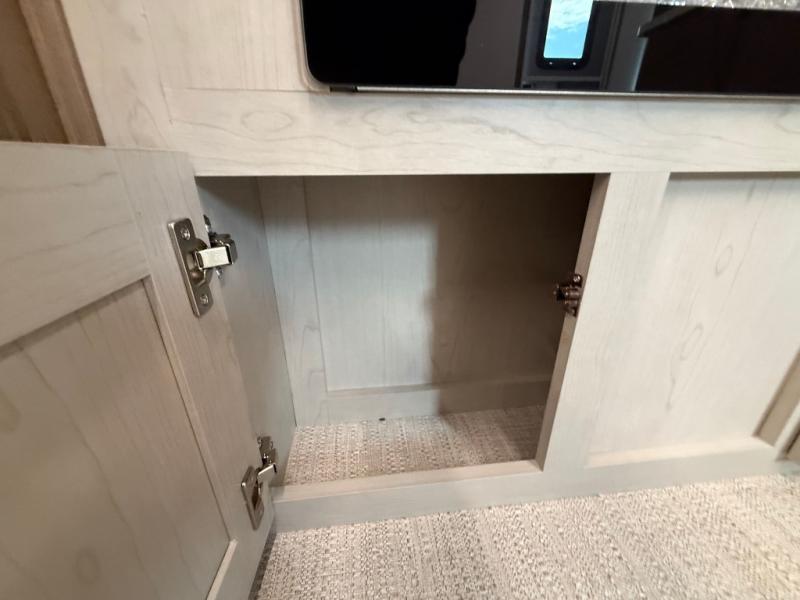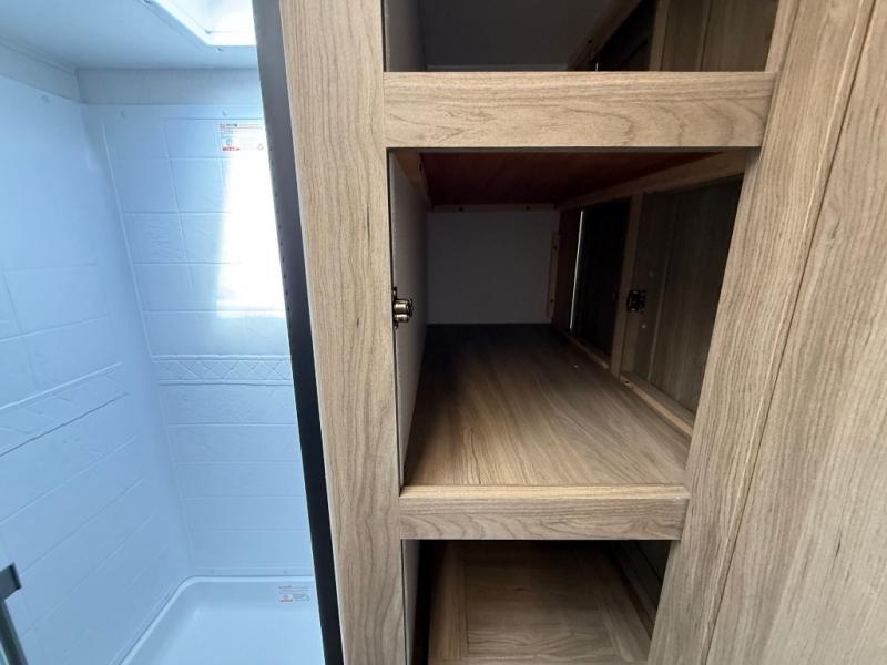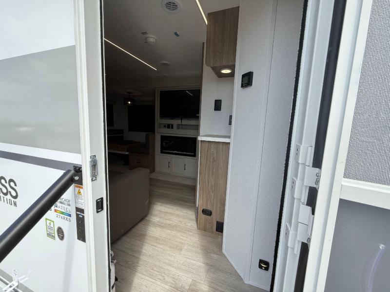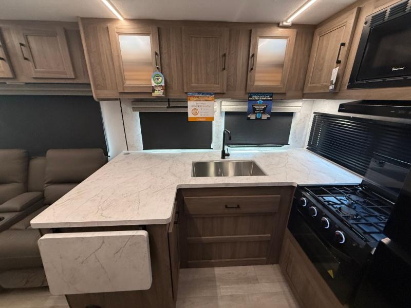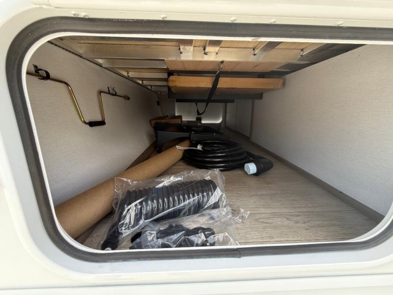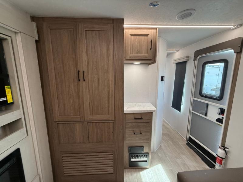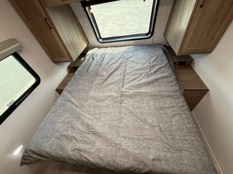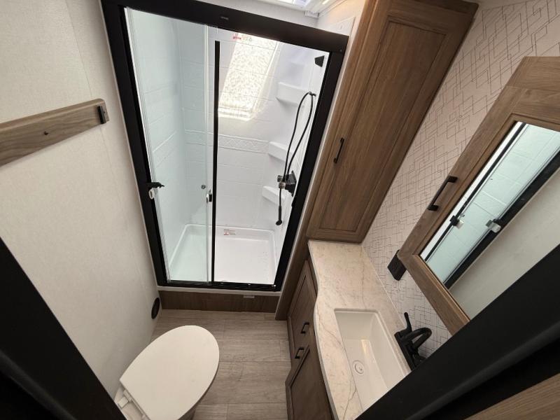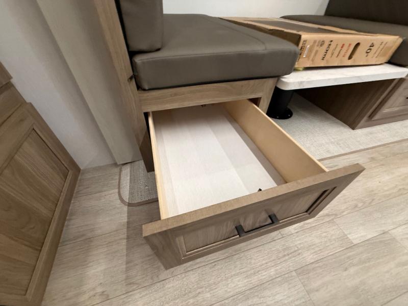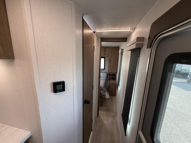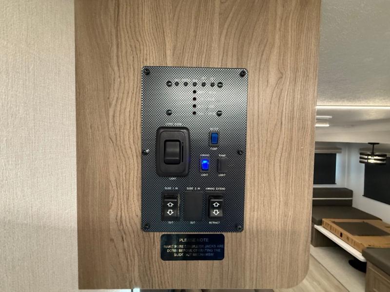 Are you looking for a travel trailer that will feel more like home? Look no further than this model that features a private bedroom up front, a full bath, plus a spacious rear kitchen. You will love to relax on the theatre sofa/hide-a-bed sofa across from the Smart TV and fireplace, and there is a booth dinette for dining. This model also includes a hidden pantry behind the TV for smart storage solutions. If the weather is nice you may just want to sit outdoors under the 18' power awning with LED lights. The chef of your group can prepare a meal on the pull-out camp kitchen, and the kids can grab their scooters from the pass-through storage.