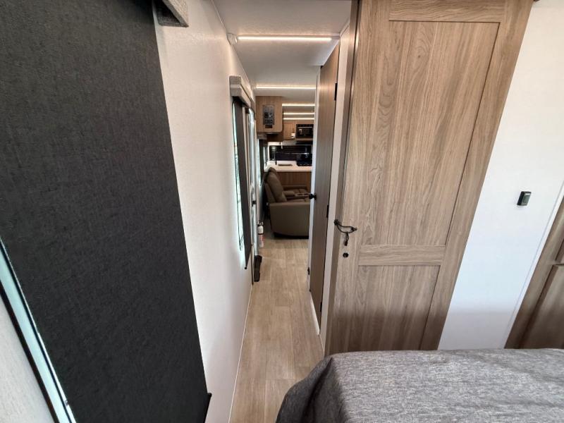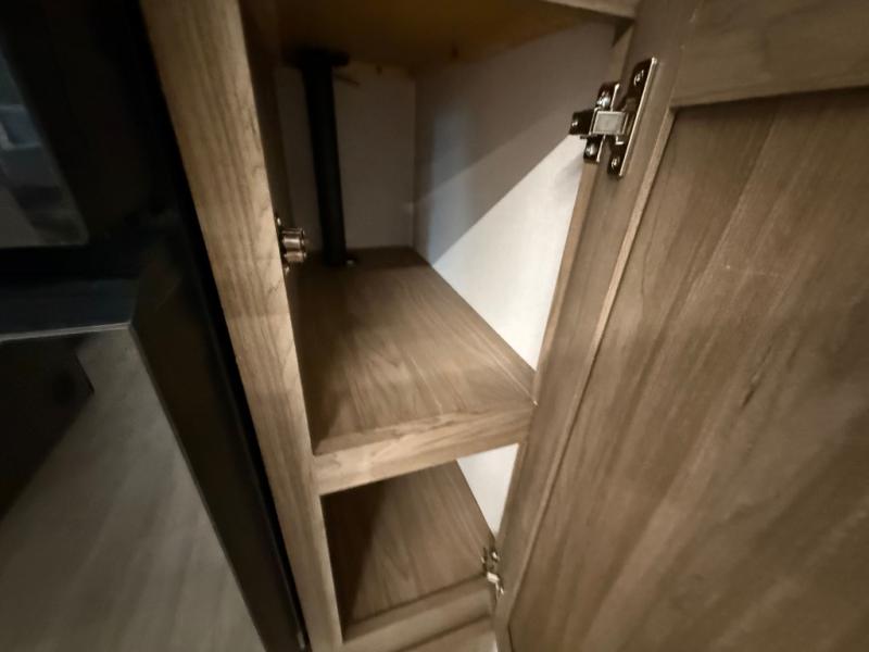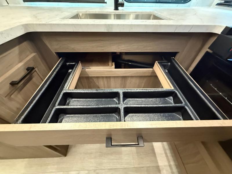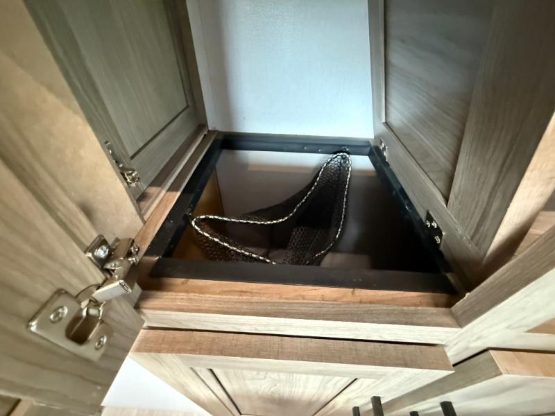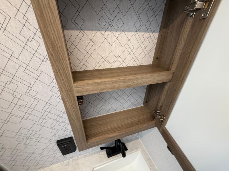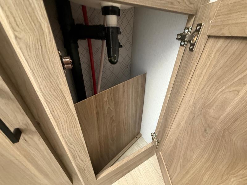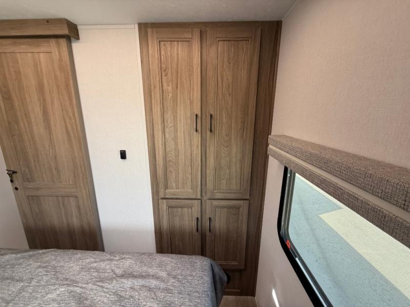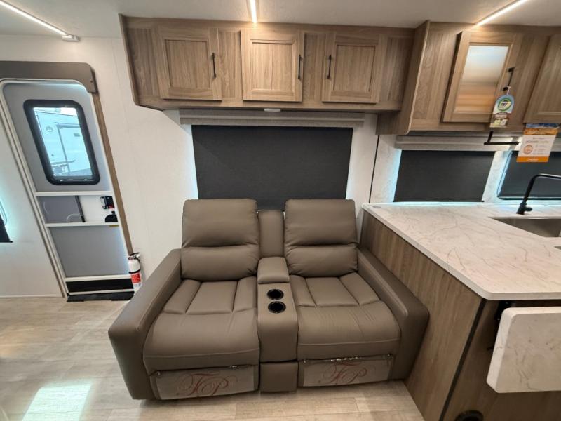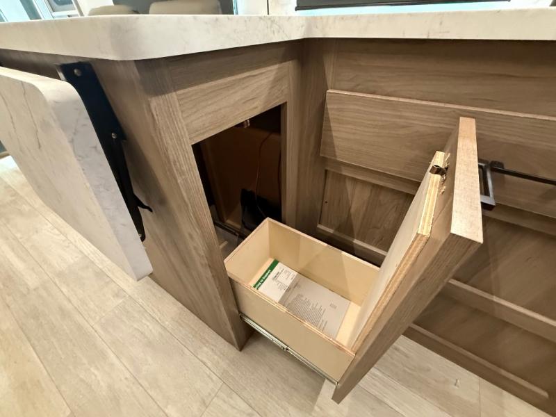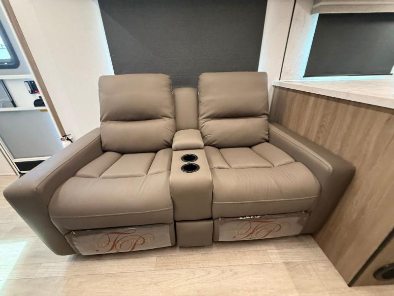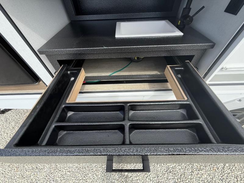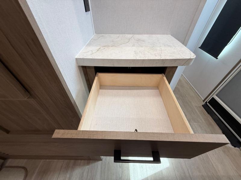 Are you looking for a travel trailer that will feel more like home? Look no further than this model that features a private bedroom up front, a full bath, plus a spacious rear kitchen. You will love to relax on the theatre sofa/hide-a-bed sofa across from the Smart TV and fireplace, and there is a booth dinette for dining. This model also includes a hidden pantry behind the TV for smart storage solutions. If the weather is nice you may just want to sit outdoors under the 18' power awning with LED lights. The chef of your group can prepare a meal on the pull-out camp kitchen, and the kids can grab their scooters from the pass-through storage.