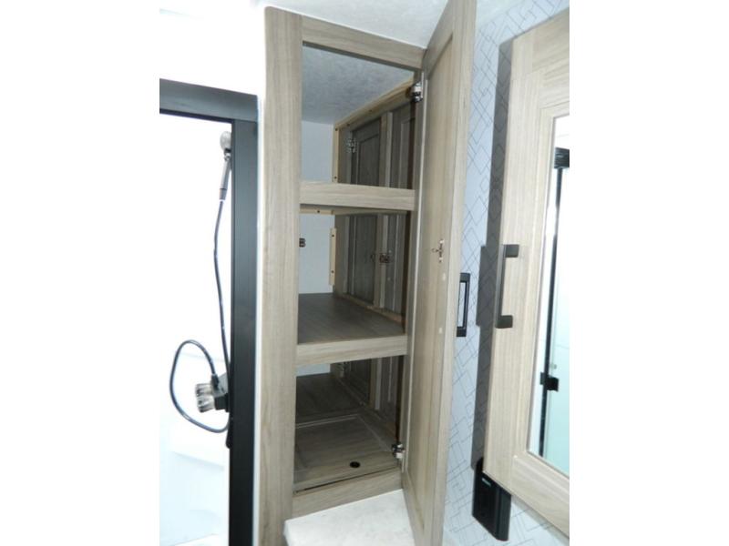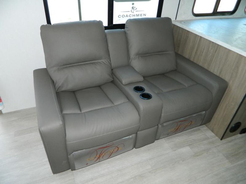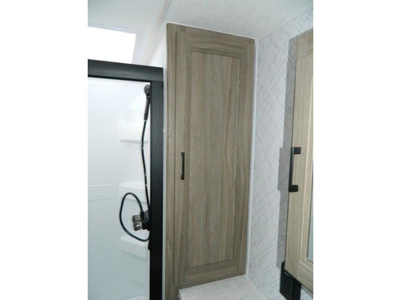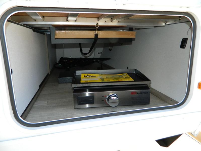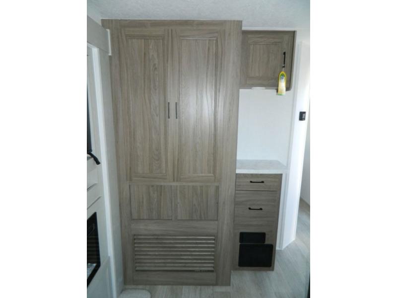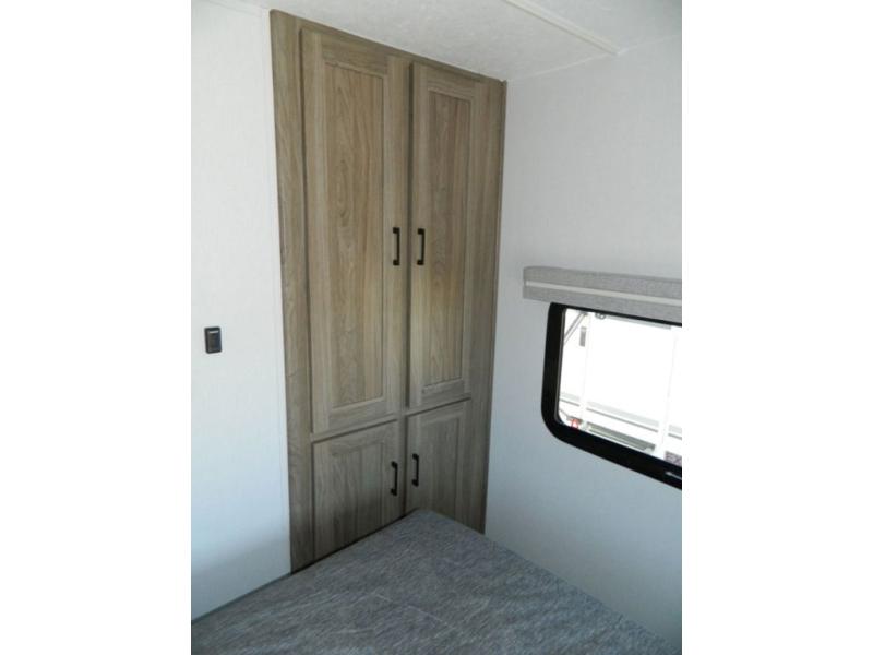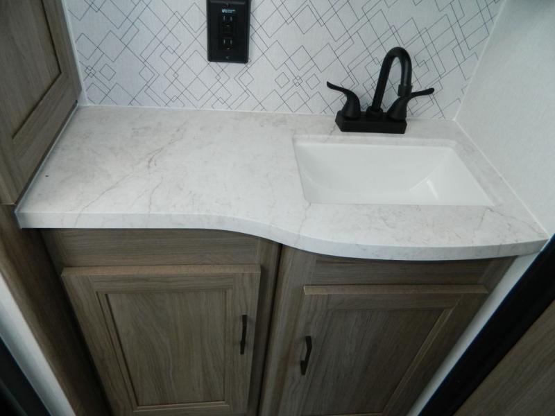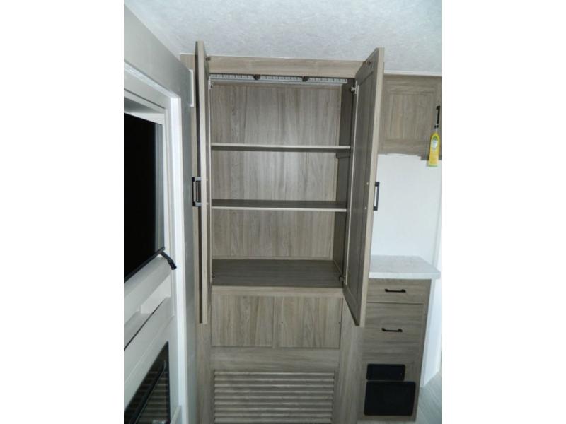 Are you looking for a travel trailer that will feel more like home? Look no further than this model that features a private bedroom up front, a full bath, plus a spacious rear kitchen. You will love to relax on the sofa or opt for the theatre sofa/hide-a-bed sofa across from the Smart TV and fireplace, and there is a booth dinette for dining. This model also includes a hidden pantry behind the TV for smart storage solutions. If the weather is nice you may just want to sit outdoors under the 18' power awning with LED lights. The chef of your group can prepare a meal on the pull-out camp kitchen, and the kids can grab their scooters from the pass-through storage.