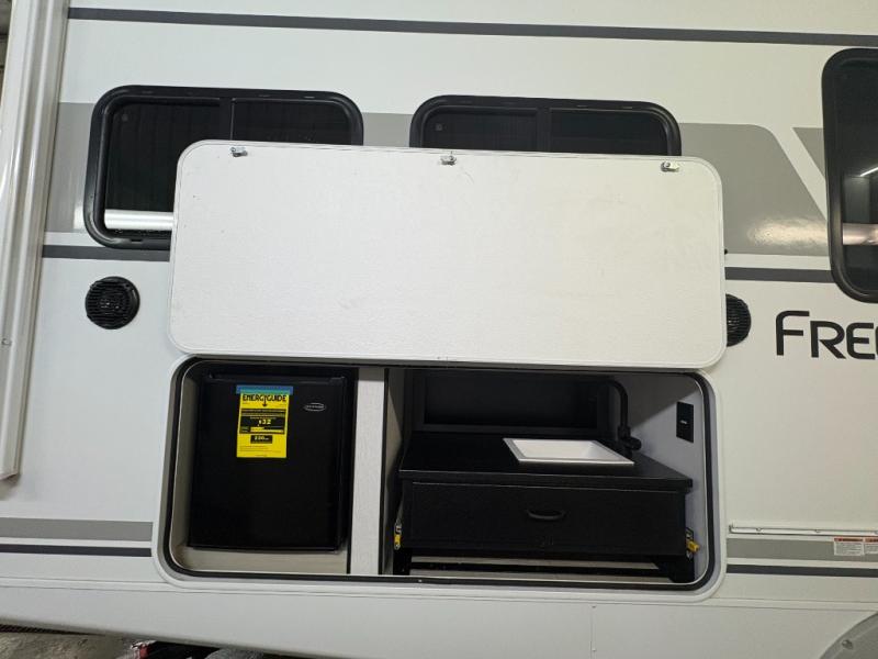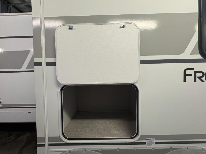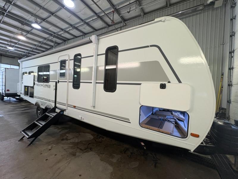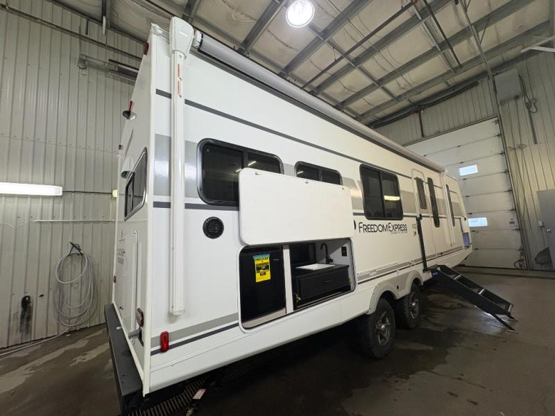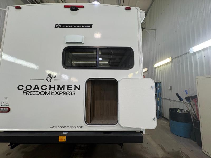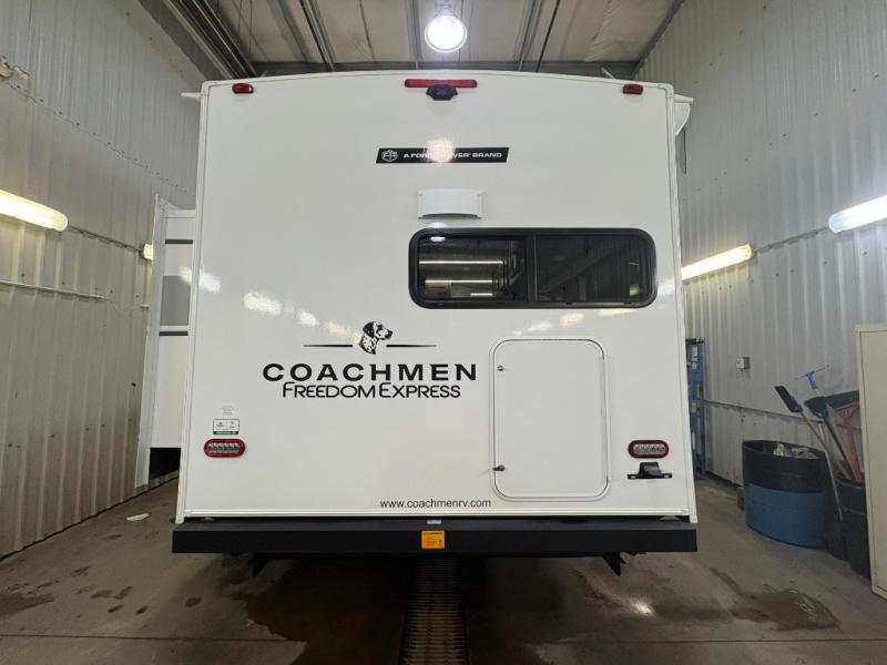 With any Freedom Express Ultra Lite travel trailer by Coachmen you will appreciate quality construction materials, such as vacuum bonded walls with Azdel composite, a 3/4 gel coated fiberglass cap with an automotive glass windshield, and a heated enclosed underbelly. Each model also features Tufflex PVC roofing, front rock guard, and E-Z Lube axles for smooth towing. Inside, you'll find kitchen backsplash, hidden hinge cabinetry, and wear-resistant vinyl flooring throughout. The power tongue jack included with the Ultra Lite Express Package will make set-up a breeze, and each model includes back-up camera prep and they are Freedom solar ready if you plan to go off-grid. Enjoy lightweight camping with a Freedom Express Ultra Lite travel trailer today!