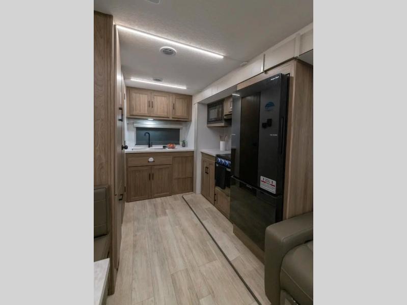 With any Freedom Express Ultra Lite travel trailer by Coachmen you will appreciate quality construction materials, such as vacuum bonded walls with Azdel composite, a 3/4 gel coated fiberglass cap with an automotive glass windshield, and a heated enclosed underbelly. Each model also features Tufflex PVC roofing, front rock guard, and E-Z Lube axles for smooth towing. Inside, you'll find kitchen backsplash, hidden hinge cabinetry, and wear-resistant vinyl flooring throughout. The power tongue jack included with the Ultra Lite Express Package will make set-up a breeze, and each model includes back-up camera prep and they are Freedom solar ready if you plan to go off-grid. Enjoy lightweight camping with a Freedom Express Ultra Lite travel trailer today!
