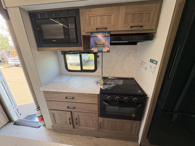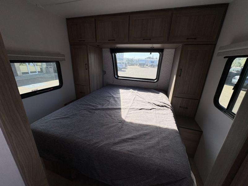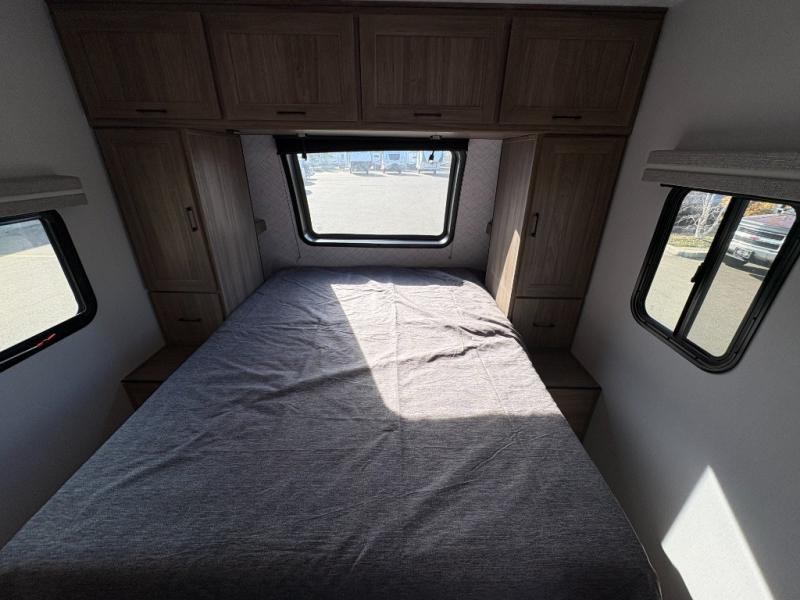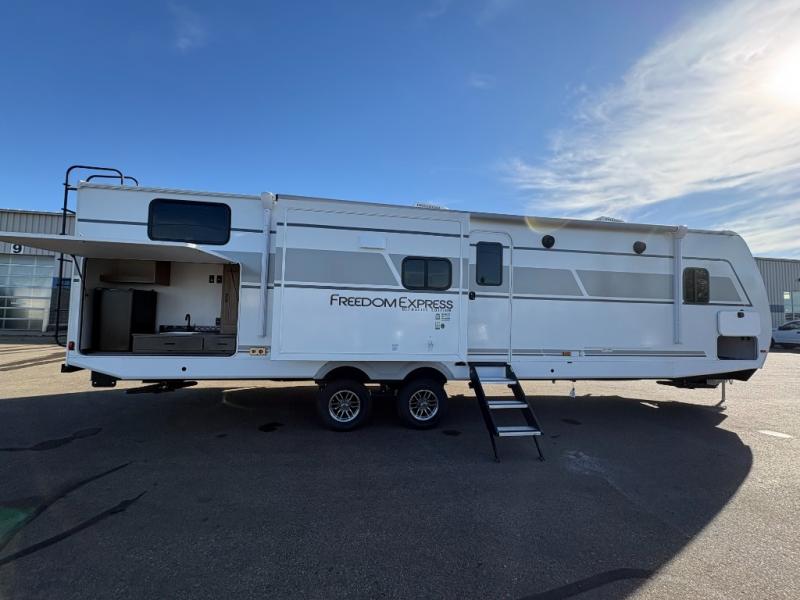 With any Freedom Express Ultra Lite travel trailer by Coachmen you will appreciate quality construction materials, such as vacuum bonded walls with Azdel composite, a 3/4 gel coated fiberglass cap with an automotive glass windshield, and a heated enclosed underbelly. Each model also features Tufflex PVC roofing, front rock guard, and E-Z Lube axles for smooth towing. Inside, you'll find kitchen backsplash, hidden hinge cabinetry, and wear-resistant vinyl flooring throughout. The power tongue jack included with the Ultra Lite Express Package will make set-up a breeze, and each model includes back-up camera prep and they are Freedom solar ready if you plan to go off-grid. Enjoy lightweight camping with a Freedom Express Ultra Lite travel trailer today!