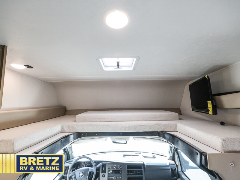 You will be met with comfort at every turn in this coach for six! Once you have stopped for the day, you can make lunch on the three burner cooktop and grab a cold drink from the 10 cu. ft. 12V refrigerator. There is a J-lounge with a pedestal table and extension where you can dine together, and the swing-arm TV in the cab will let you check the weather before heading outdoors. The rear corner full bath will let everyone freshen up when you return from hiking, and you'll enjoy a queen bed to sleep on each night, while your guest take the J-lounge and cab-over bunk!