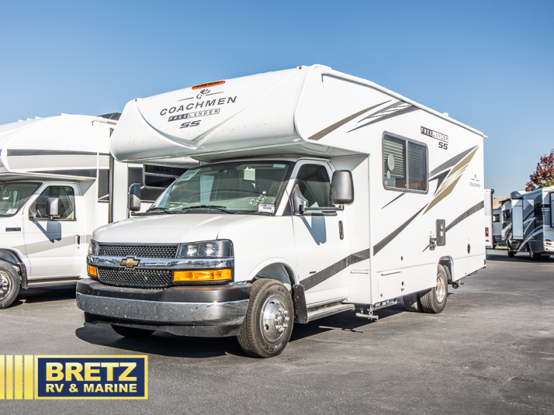 With any Freelander SS Class C gas motorhome by Coachmen, you will find a quality constructed coach for all your journeys. There is AlphaPly TPO seamless one-piece roof material and a max-length power awning with an LED light strip so you can enjoy evenings outdoors. You will also find a molded fiberglass front cap, a rotocast rear warehouse storage compartment, and an upgraded exterior safety grab handle. The mandatory SS Package includes a tankless water heater, running boards, and a towing hitch for your hauling needs. Head inside to enjoy the premium one-piece Thermofoil countertops and vinyl flooring, brushed nickle hardware, pleated night shades, and many more comforts.