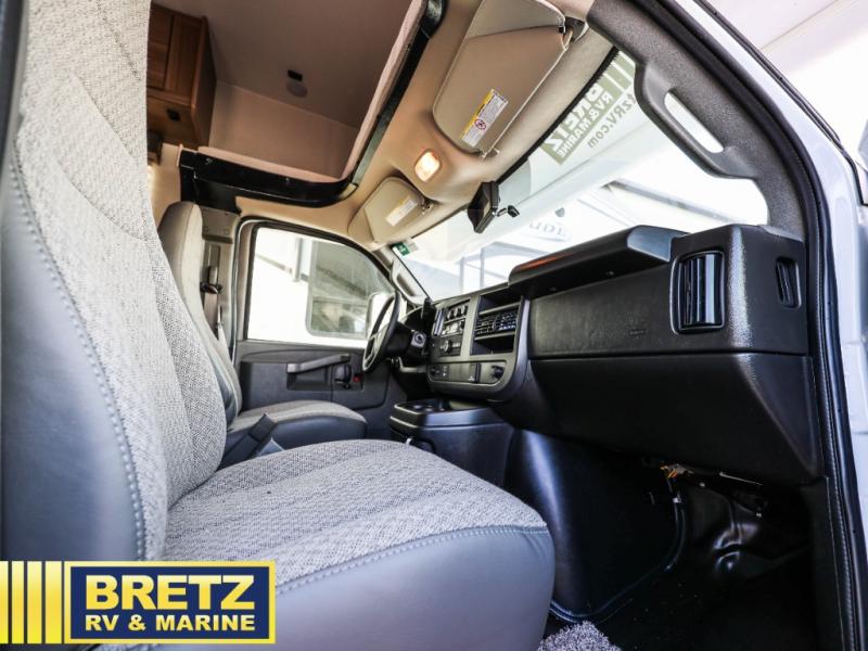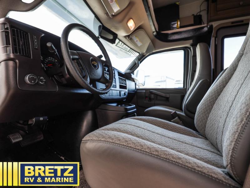 You will be met with comfort at every turn in this coach for six! Once you have stopped for the day, you can make lunch on the three burner cooktop and grab a cold drink from the 10 cu. ft. 12V refrigerator. There is a J-lounge with a pedestal table and extension where you can dine together, and the swing-arm TV in the cab will let you check the weather before heading outdoors. The rear corner full bath will let everyone freshen up when you return from hiking, and you'll enjoy a queen bed to sleep on each night, while your guest take the J-lounge and cab-over bunk!