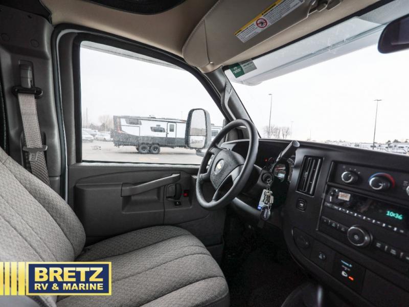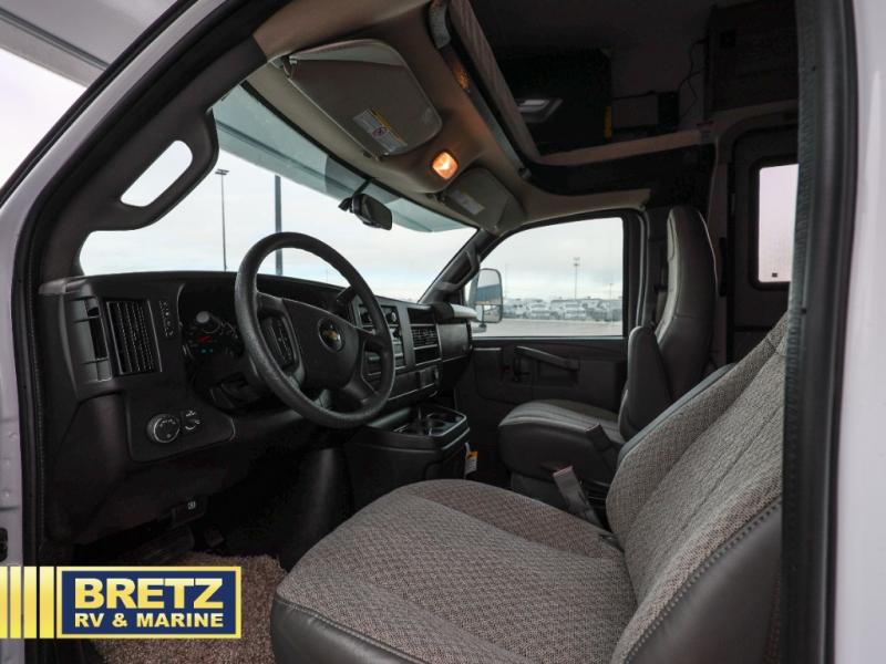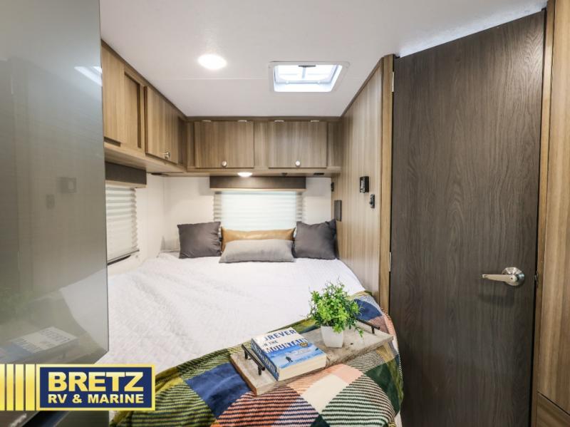 You will be met with comfort at every turn in this coach for six! Once you have stopped for the day, you can make lunch on the three burner cooktop and grab a cold drink from the 10 cu. ft. 12V refrigerator. There is a J-lounge with a pedestal table and extension where you can dine together, and the swing-arm TV in the cab will let you check the weather before heading outdoors. The rear corner full bath will let everyone freshen up when you return from hiking, and you'll enjoy a queen bed to sleep on each night, while your guest take the J-lounge and cab-over bunk!