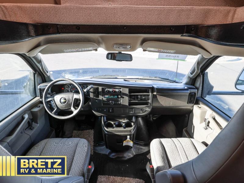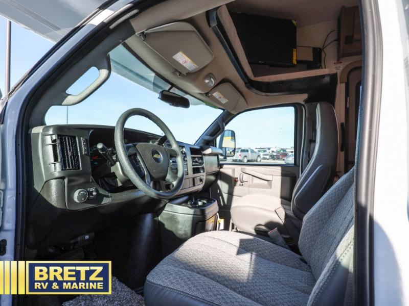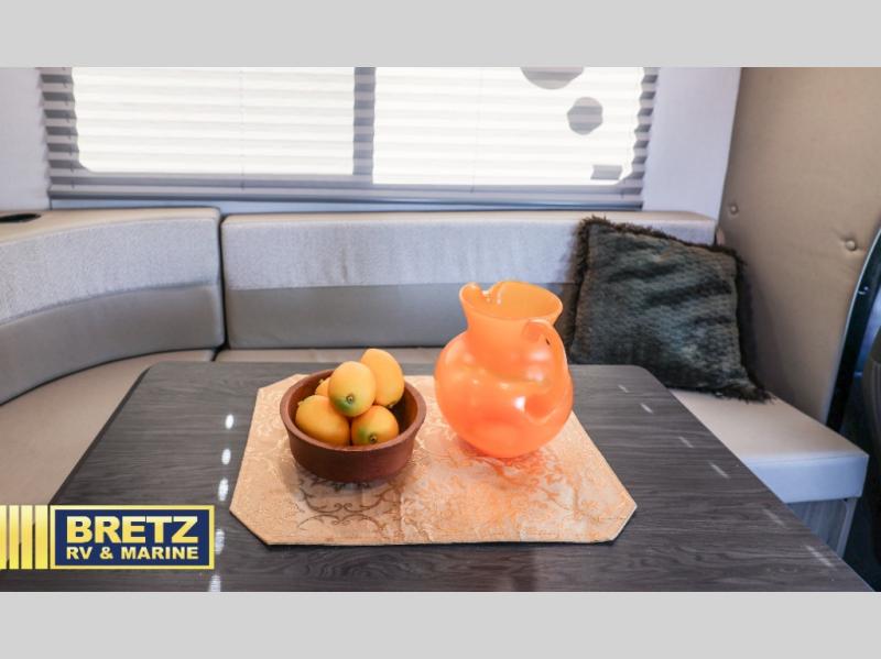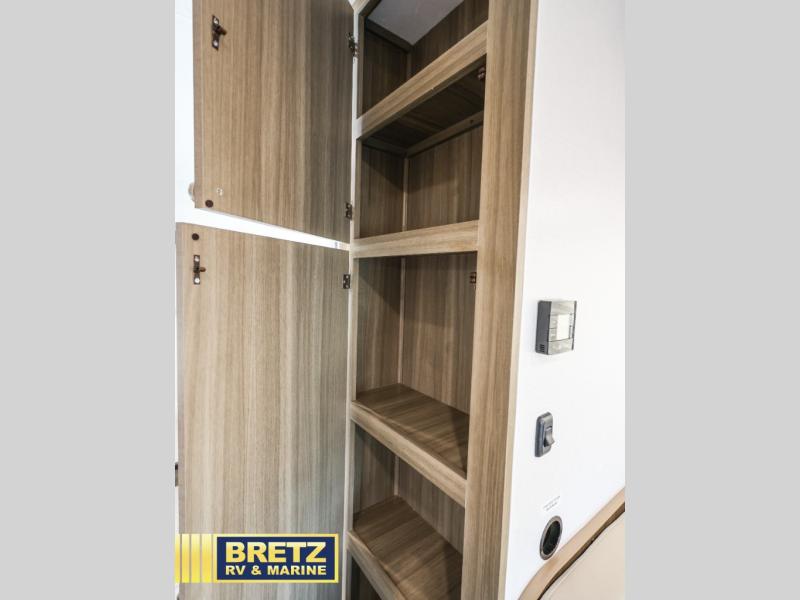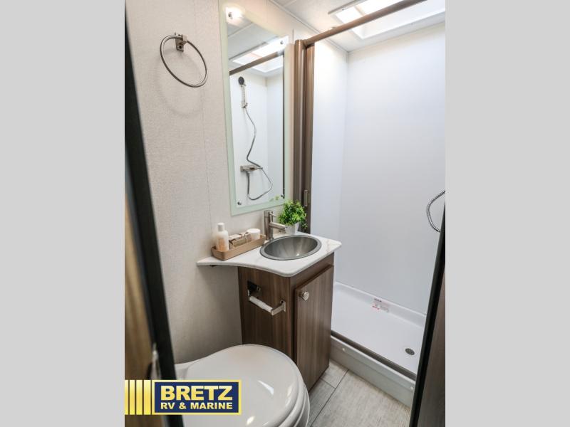 You will be met with comfort at every turn in this coach for six! Once you have stopped for the day, you can make lunch on the three burner cooktop and grab a cold drink from the 10 cu. ft. 12V refrigerator. There is a J-lounge with a pedestal table and extension where you can dine together, and the swing-arm TV in the cab will let you check the weather before heading outdoors. The rear corner full bath will let everyone freshen up when you return from hiking, and you'll enjoy a queen bed to sleep on each night, while your guest take the J-lounge and cab-over bunk!