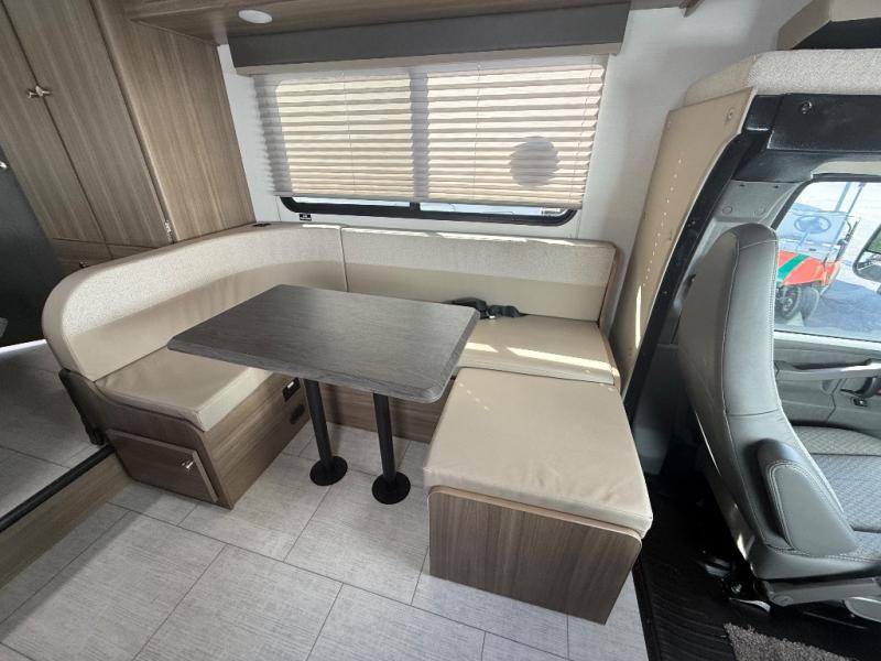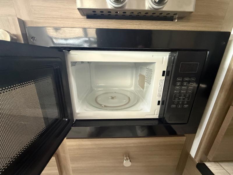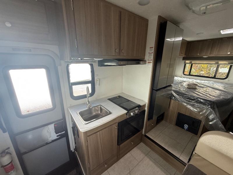 You will be met with comfort at every turn in this coach for six! Once you have stopped for the day, you can make lunch on the three burner cooktop and grab a cold drink from the 10 cu. ft. 12V refrigerator. There is a J-lounge with a pedestal table and extension where you can dine together, and the swing-arm TV in the cab will let you check the weather before heading outdoors. The rear corner full bath will let everyone freshen up when you return from hiking, and you'll enjoy a queen bed to sleep on each night, while your guest take the J-lounge and cab-over bunk!