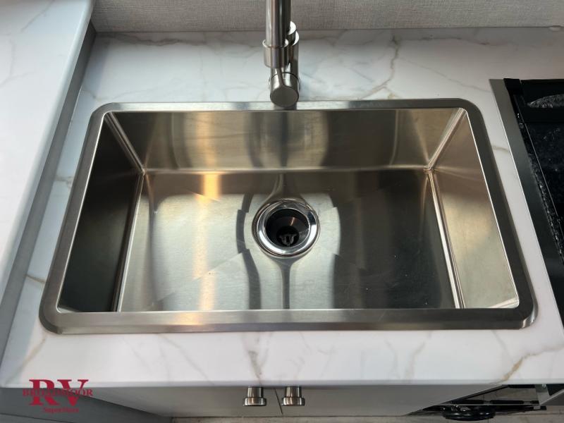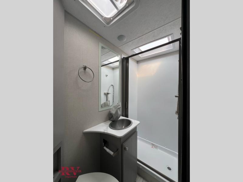 You will be met with comfort at every turn in this coach for six! Once you have stopped for the day, you can make lunch on the three burner cooktop and grab a cold drink from the 10.7 cu. ft. 12V refrigerator. There is a J-lounge with a pedestal table and extension where you can dine together, and the swing-arm TV in the cab will let you check the weather before heading outdoors. The rear corner full bath will let everyone freshen up when you return from hiking, and you'll enjoy a queen bed slide out to sleep on each night, while your guest take the J-lounge and cab-over bunk!