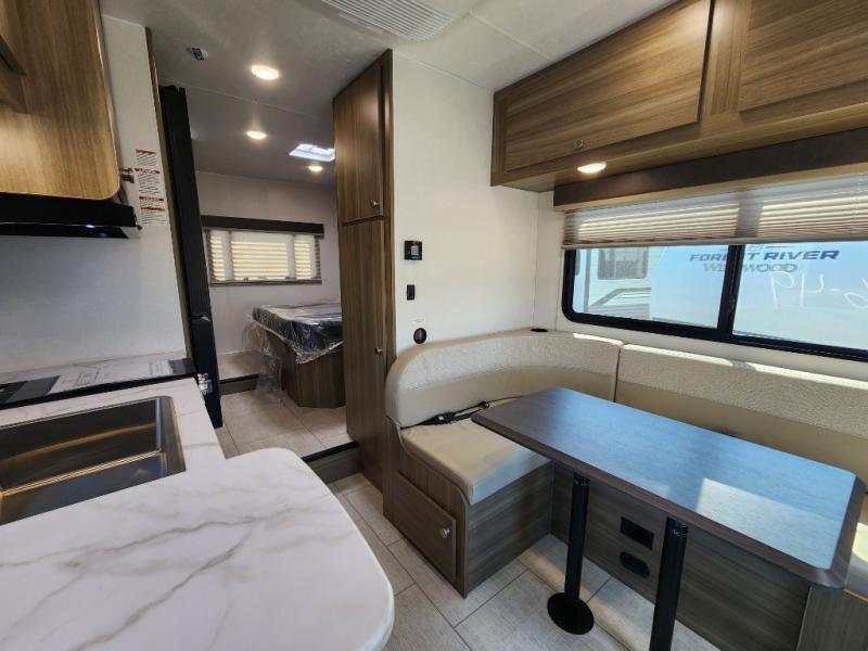 With any Freelander SS Class C gas motorhome by Coachmen, you will find a quality constructed coach for all your journeys. There is AlphaPly TPO seamless one-piece roof material and a max-length power awning with an LED light strip so you can enjoy evenings outdoors. You will also find a molded fiberglass front cap, a rotocast rear warehouse storage compartment, and an upgraded exterior safety grab handle. The mandatory SS Package includes a tankless water heater, running boards, and a towing hitch for your hauling needs. Head inside to enjoy the premium one-piece Thermofoil countertops and vinyl flooring, brushed nickle hardware, pleated night shades, and many more comforts.