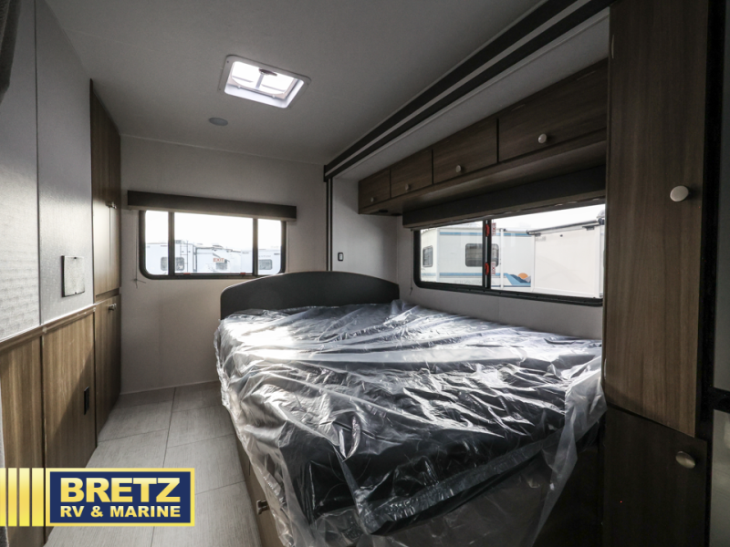 Enjoy a great escape in this motorhome! With a 60” x 80” queen bed and a 57” x 95” bunk over the cab, there’ll be plenty of space for everyone. Eat your meals at the spacious U-dinette or use it to spread out and play a board game once the dishes are cleared away. The kitchen rivals your home setup with a pantry, microwave, and stainless steel farmer's kitchen sink with a high-rise kitchen faucet. This model also includes the CRV Supersprings Ride with heavy duty stabilizer bars, chassis electronic stability control, SumoSprings front shock absorbers, and more!