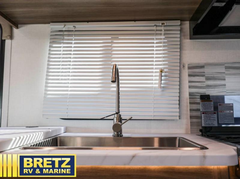 Enjoy a great escape in this motorhome! With a 60” x 80” queen bed and a 57” x 95” bunk over the cab, there’ll be plenty of space for everyone. Eat your meals at the spacious U-dinette or use it to spread out and play a board game once the dishes are cleared away. The kitchen rivals your home setup with a pantry, microwave, and stainless steel farmer's kitchen sink with a high-rise kitchen faucet. This model also includes the CRV Supersprings Ride with heavy duty stabilizer bars, chassis electronic stability control, SumoSprings front shock absorbers, and more!