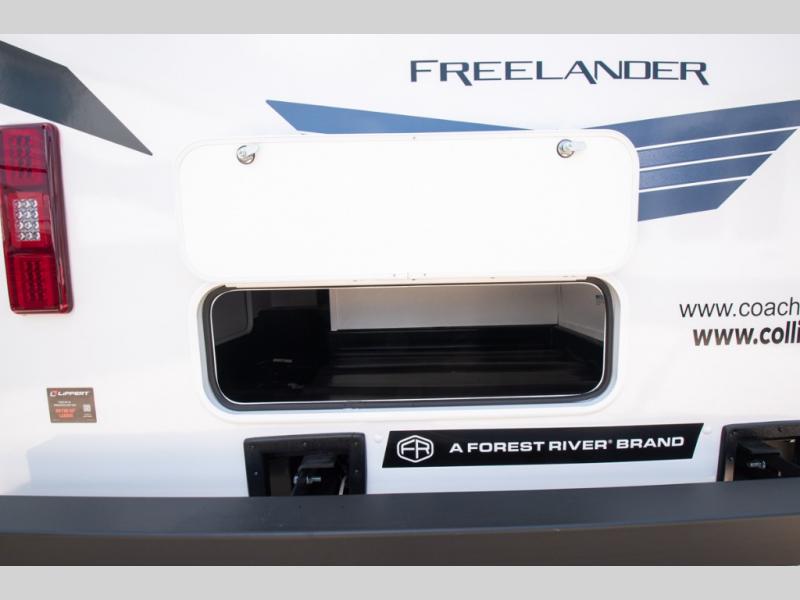 The Freelander Class C gas motorhome by Coachmen is a wonderful choice for anyone looking to get out on the road. A wide variety of floorplans and features offers something for everyone. The Azdel composite sidewalls and seamless one-piece roof membrane provide a solid structure to enjoy all your trips. Conveniences like storage above entrance door with an HDMI and charge station and reclining cockpit seats are standard, along with a rear color backup camera, a premium showerhead and faucet, and one-piece thermofoil countertops. The mandatory Explorer Package includes an exterior shower to rinse off before entering inside and an on-demand tankless water heater for hot water fast. Come find your favorite one today!