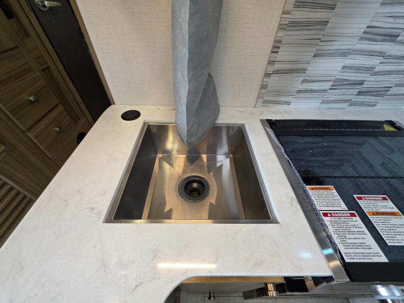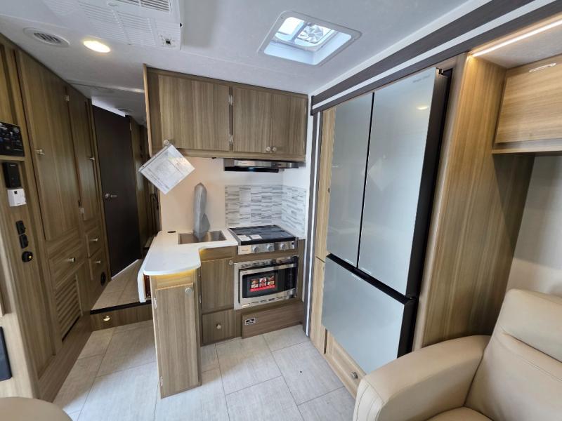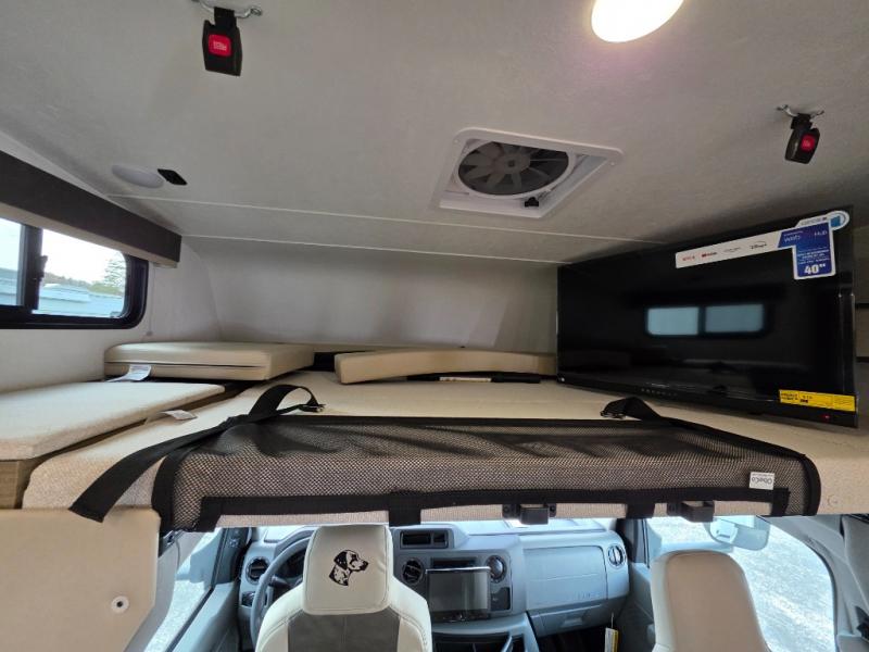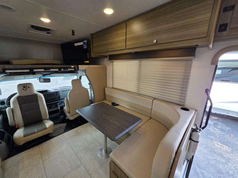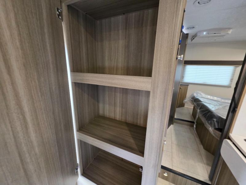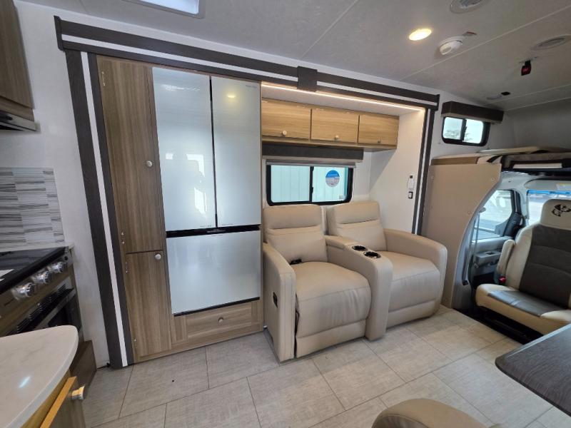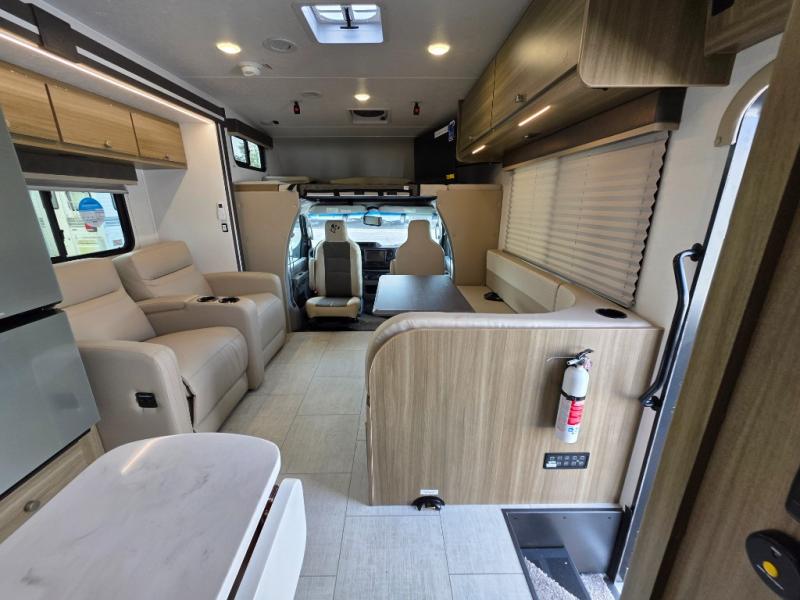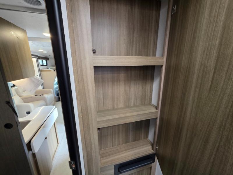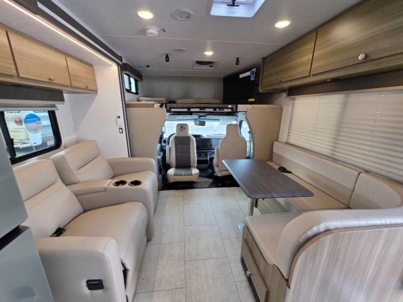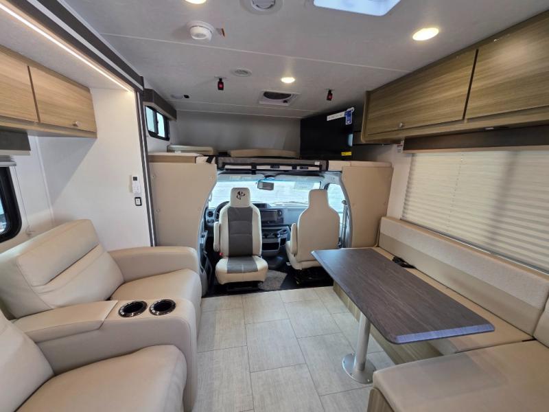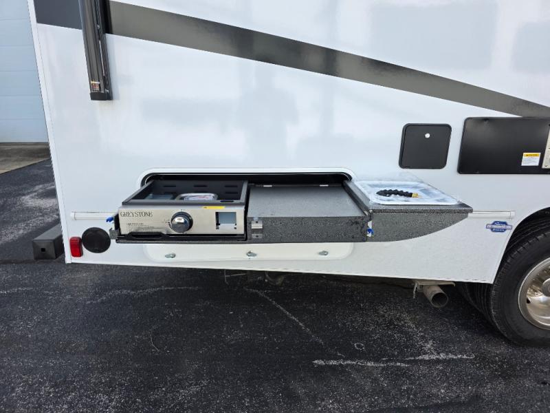 Two slide outs expand your vacation in this fun motorhome! Relax in the living area with a 62” sofa, or swap it out for optional recliners. The J-lounge dinette with an 18” extension provides another space for leisure time or gourmet meals. The kitchen layout feels spacious with two pantries and thermofoil countertops with a flip-down extension for extra prep space. In the rear, you’ll find a queen bed with overhead cabinet and dual nightstands, plus a roomy bath with shower and linen closet. Outside is an awning and you can even add on an optional outdoor kitchen table for more fun in the sun! This model also includes the CRV Supersprings Ride with heavy duty stabilizer bars, chassis electronic stability control, SumoSprings front shock absorbers, and more!