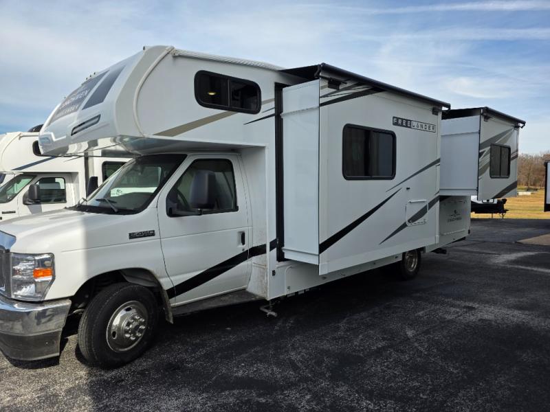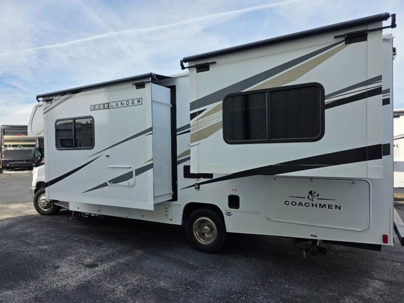 The Freelander Class C gas motorhome by Coachmen is a wonderful choice for anyone looking to get out on the road. A wide variety of floorplans and features offers something for everyone. The Azdel composite sidewalls and seamless one-piece roof membrane provide a solid structure to enjoy all your trips. Conveniences like storage above entrance door with an HDMI and charge station and reclining cockpit seats are standard, along with a rear color backup camera, a premium showerhead and faucet, and one-piece thermofoil countertops. The mandatory Explorer Package includes an exterior shower to rinse off before entering inside and an on-demand tankless water heater for hot water fast. Come find your favorite one today!