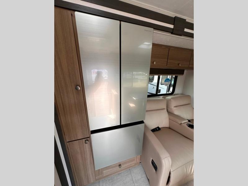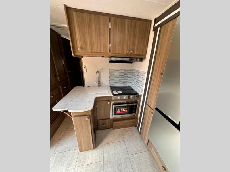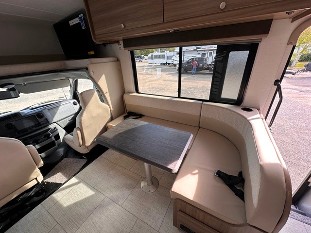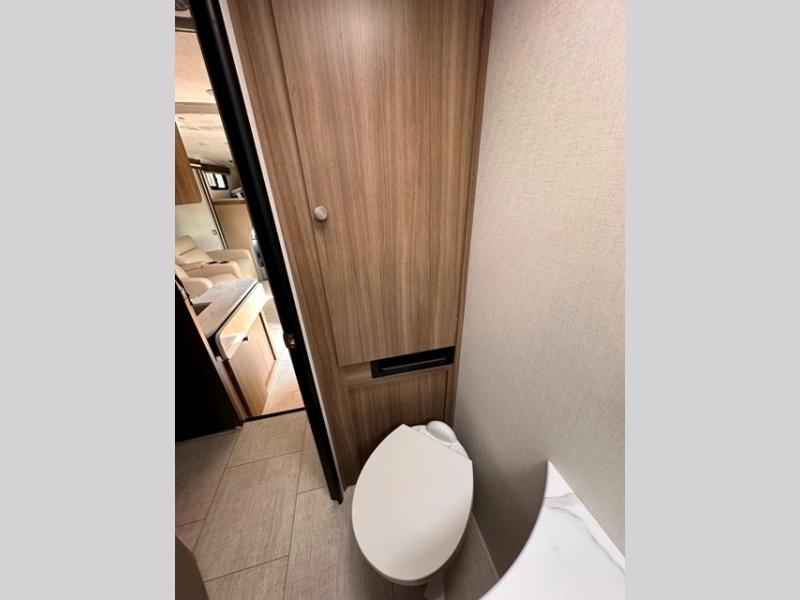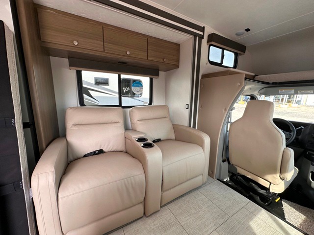 Two slide outs expand your vacation in this fun motorhome! Relax in the living area with a 62” sofa, or swap it out for optional recliners. The J-lounge dinette with an 18” extension provides another space for leisure time or gourmet meals. The kitchen layout feels spacious with two pantries and thermofoil countertops with a flip-down extension for extra prep space. In the rear, you’ll find a queen bed with overhead cabinet and dual nightstands, plus a roomy bath with shower and linen closet. Outside is an awning and you can even add on an optional outdoor kitchen table for more fun in the sun! This model also includes the CRV Supersprings Ride with heavy duty stabilizer bars, chassis electronic stability control, SumoSprings front shock absorbers, and more!