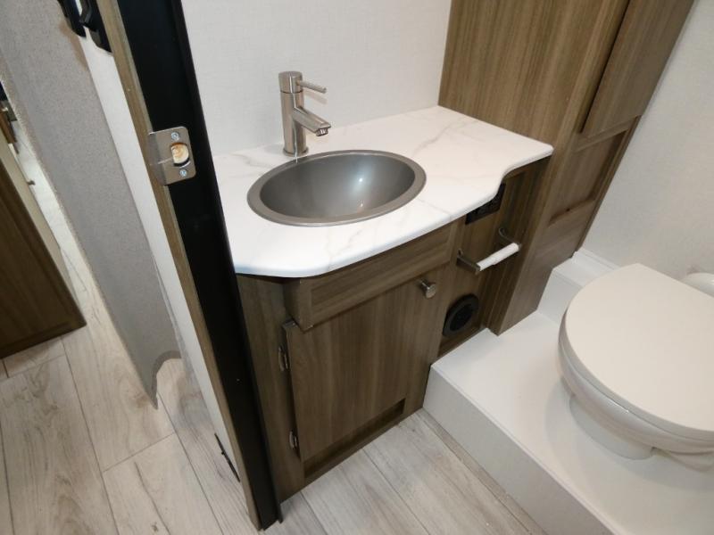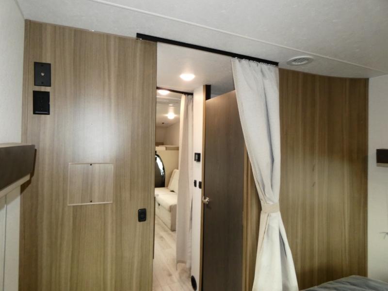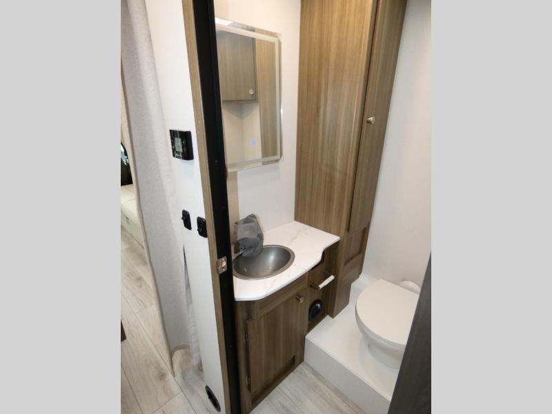 Sneak off for a getaway in this motorhome that has everything you might need! The private rear bedroom has a 60” x 80” queen bed with storage on either side and plenty of room to walk around. The bathroom is split with the shower on one side and the sink and toilet behind a separate door so sharing is a breeze. Relax up front on either the sofa or the roomy 42” x 71” dinette with cabinets above for all your supplies. A bunk over the cab provides yet another sleeping area that will be popular with little ones. Time to get out there in the Freelander!