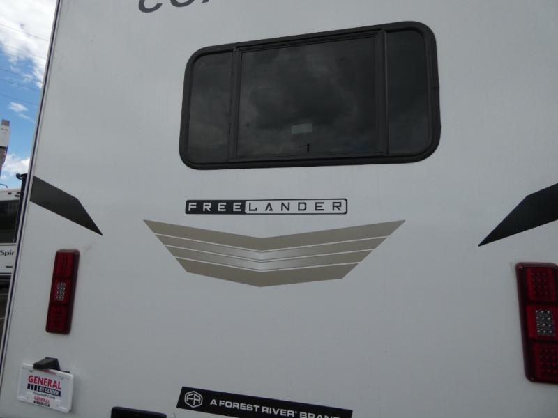 The Freelander Class C gas motorhome by Coachmen is a wonderful choice for anyone looking to get out on the road. A wide variety of floorplans and features offers something for everyone. The Azdel composite sidewalls and seamless one-piece roof membrane provide a solid structure to enjoy all your trips. Conveniences like storage above entrance door with an HDMI and charge station and reclining cockpit seats are standard, along with a rear color backup camera, a premium showerhead and faucet, and one-piece thermofoil countertops. The mandatory Explorer Package includes an exterior shower to rinse off before entering inside and an on-demand tankless water heater for hot water fast. Come find your favorite one today!
