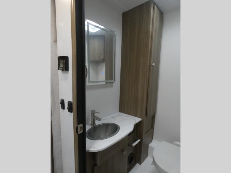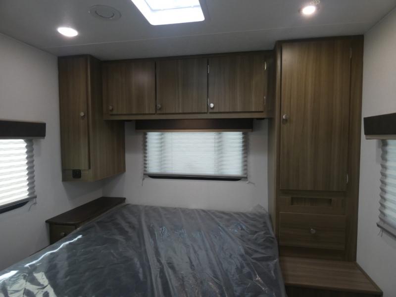 Sneak off for a getaway in this motorhome that has everything you might need! The private rear bedroom has a 60” x 80” queen bed with storage on either side and plenty of room to walk around. The bathroom is split with the shower on one side and the sink and toilet behind a separate door so sharing is a breeze. Relax up front on either the sofa or the roomy 42” x 71” dinette with cabinets above for all your supplies. A bunk over the cab provides yet another sleeping area that will be popular with little ones. Time to get out there in the Freelander!