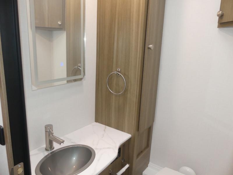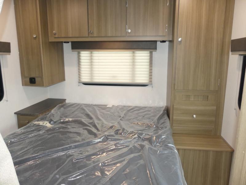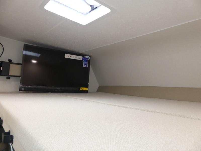 Sneak off for a getaway in this motorhome that has everything you might need! The private rear bedroom has a 60” x 80” queen bed with storage on either side and plenty of room to walk around. The bathroom is split with the shower on one side and the sink and toilet behind a separate door so sharing is a breeze. Relax up front on either the sofa or the roomy 42” x 71” dinette with cabinets above for all your supplies. A bunk over the cab provides yet another sleeping area that will be popular with little ones. Time to get out there in the Freelander!