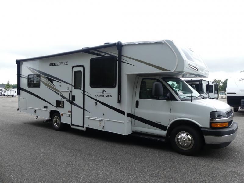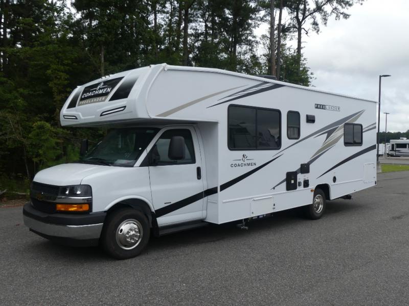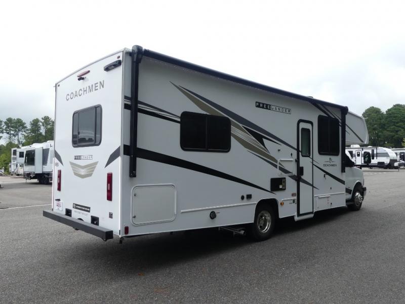 The Freelander Class C gas motorhome by Coachmen is a wonderful choice for anyone looking to get out on the road. A wide variety of floorplans and features offers something for everyone. The Azdel composite sidewalls and seamless one-piece roof membrane provide a solid structure to enjoy all your trips. Conveniences like storage above entrance door with an HDMI and charge station and reclining cockpit seats are standard, along with a rear color backup camera, a premium showerhead and faucet, and one-piece thermofoil countertops. The mandatory Explorer Package includes an exterior shower to rinse off before entering inside and an on-demand tankless water heater for hot water fast. Come find your favorite one today!