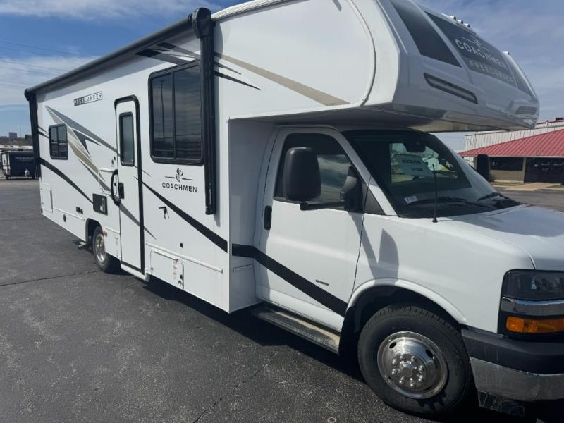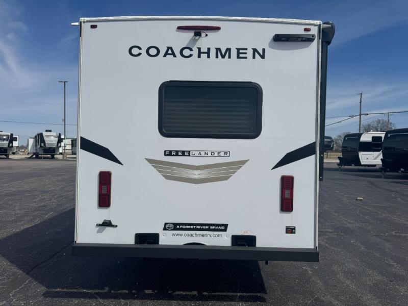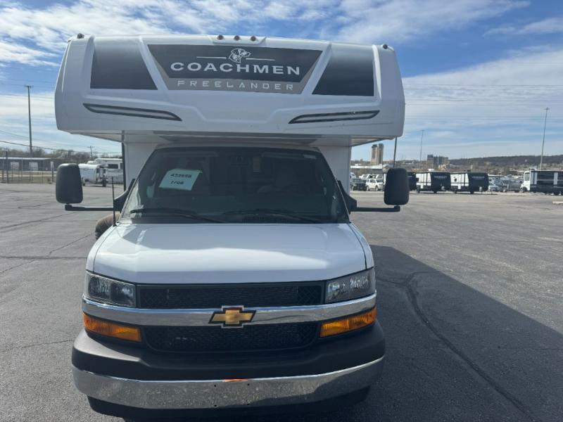 The Freelander Class C gas motorhome by Coachmen is a wonderful choice for anyone looking to get out on the road. A wide variety of floorplans and features offers something for everyone. The Azdel composite sidewalls and seamless one-piece roof membrane provide a solid structure to enjoy all your trips. Conveniences like storage above entrance door with an HDMI and charge station and reclining cockpit seats are standard, along with a rear color backup camera, a premium showerhead and faucet, and one-piece thermofoil countertops. The mandatory Explorer Package includes an exterior shower to rinse off before entering inside and an on-demand tankless water heater for hot water fast. Come find your favorite one today!