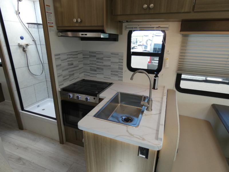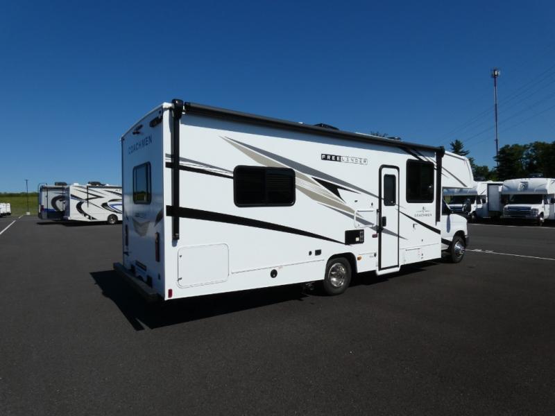The Freelander Class C gas motorhome by Coachmen is a wonderful choice for anyone looking to get out on the road. A wide variety of floorplans and features offers something for everyone. The Azdel composite sidewalls and seamless one-piece roof membrane provide a solid structure to enjoy all your trips. Conveniences like storage above entrance door with an HDMI and charge station and reclining cockpit seats are standard, along with a rear color backup camera, a premium showerhead and faucet, and one-piece thermofoil countertops. The mandatory Explorer Package includes an exterior shower to rinse off before entering inside and an on-demand tankless water heater for hot water fast. Come find your favorite one today!