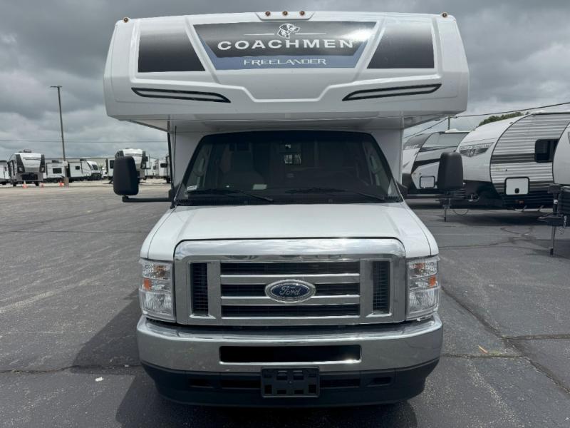 The Freelander Class C gas motorhome by Coachmen is a wonderful choice for anyone looking to get out on the road. A wide variety of floorplans and features offers something for everyone. The Azdel composite sidewalls and seamless one-piece roof membrane provide a solid structure to enjoy all your trips. Conveniences like storage above entrance door with an HDMI and charge station and reclining cockpit seats are standard, along with a rear color backup camera, a premium showerhead and faucet, and one-piece thermofoil countertops. The mandatory Explorer Package includes an exterior shower to rinse off before entering inside and an on-demand tankless water heater for hot water fast. Come find your favorite one today!