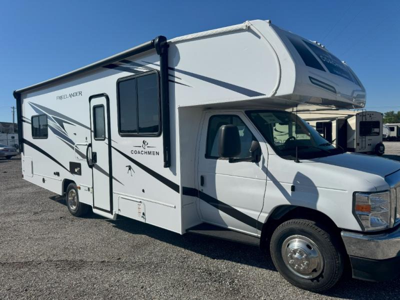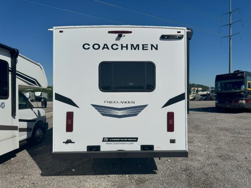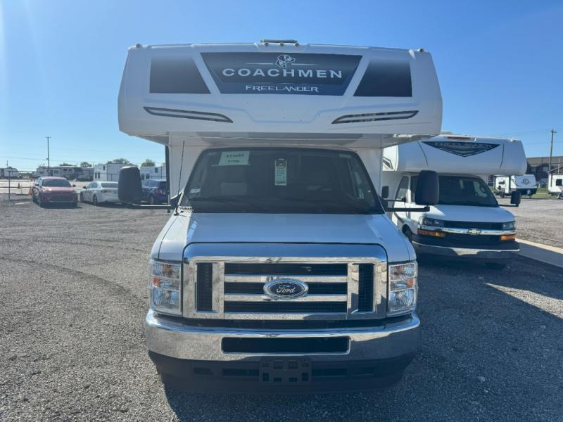 The Freelander Class C gas motorhome by Coachmen is a wonderful choice for anyone looking to get out on the road. A wide variety of floorplans and features offers something for everyone. The Azdel composite sidewalls and seamless one-piece roof membrane provide a solid structure to enjoy all your trips. Conveniences like storage above entrance door with an HDMI and charge station and reclining cockpit seats are standard, along with a rear color backup camera, a premium showerhead and faucet, and one-piece thermofoil countertops. The mandatory Explorer Package includes an exterior shower to rinse off before entering inside and an on-demand tankless water heater for hot water fast. Come find your favorite one today!