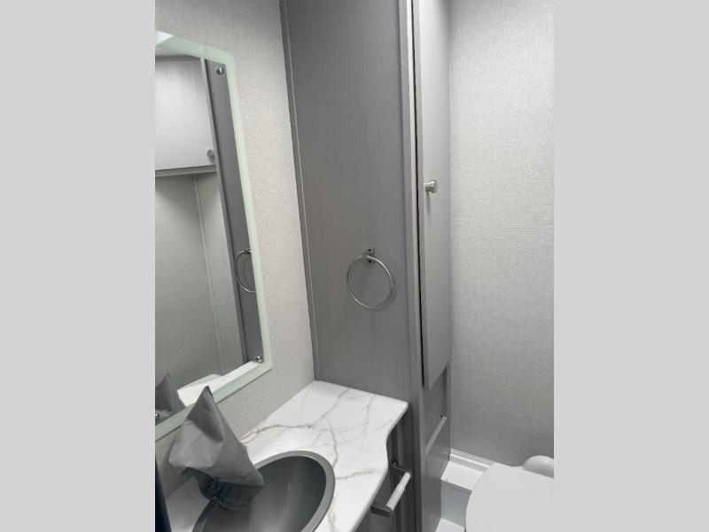 Sneak off for a getaway in this motorhome that has everything you might need! The private rear bedroom has a 60” x 80” queen bed with storage on either side and plenty of room to walk around. The bathroom is split with the shower on one side and the sink and toilet behind a separate door so sharing is a breeze. Relax up front on either the sofa or the roomy 42” x 71” dinette with cabinets above for all your supplies. A bunk over the cab provides yet another sleeping area that will be popular with little ones. Time to get out there in the Freelander!
