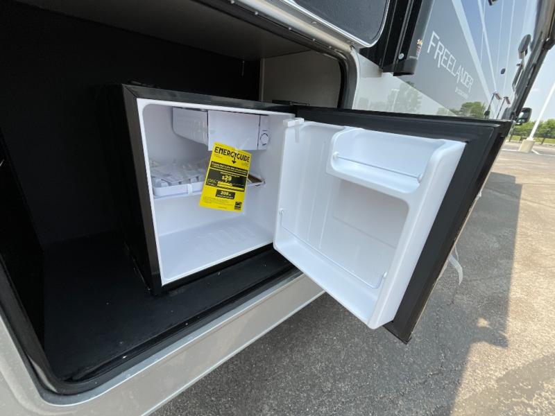 Inside, the Freelander 31MB offers an inviting atmosphere with an open living area, large kitchen workspace, generous seating, and multiple sleeping options that make traveling with guests easier than ever. The mid-bunk adds flexibility for families or those who simply want extra room for gear, work, pets, or hobbies. From the private bedroom to the large bathroom and thoughtfully placed storage throughout, this motorhome is built to support longer trips without sacrificing the feeling of home. High-end construction materials, upgraded insulation, and Coachmen’s attention to detail ensure durability and year-round enjoyment.