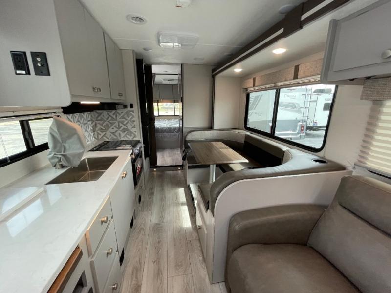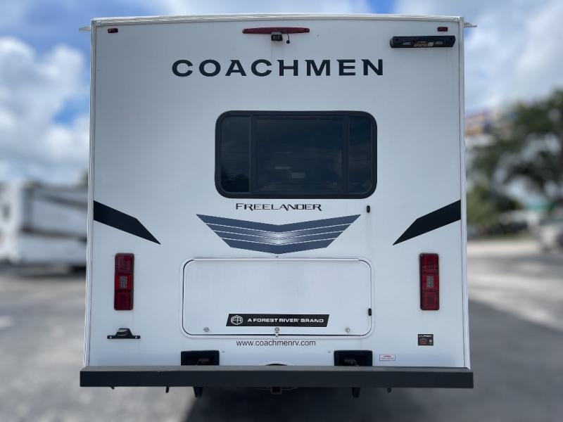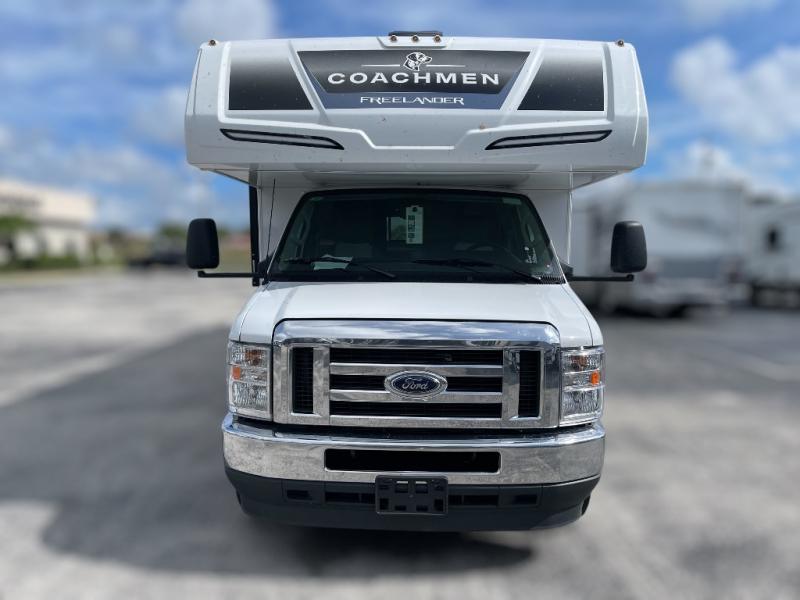 The Freelander Class C gas motorhome by Coachmen is a wonderful choice for anyone looking to get out on the road. A wide variety of floorplans and features offers something for everyone. The Azdel composite sidewalls and seamless one-piece roof membrane provide a solid structure to enjoy all your trips. Conveniences like storage above entrance door with an HDMI and charge station and reclining cockpit seats are standard, along with a rear color backup camera, a premium showerhead and faucet, and one-piece thermofoil countertops. The mandatory Explorer Package includes an exterior shower to rinse off before entering inside and an on-demand tankless water heater for hot water fast. Come find your favorite one today!