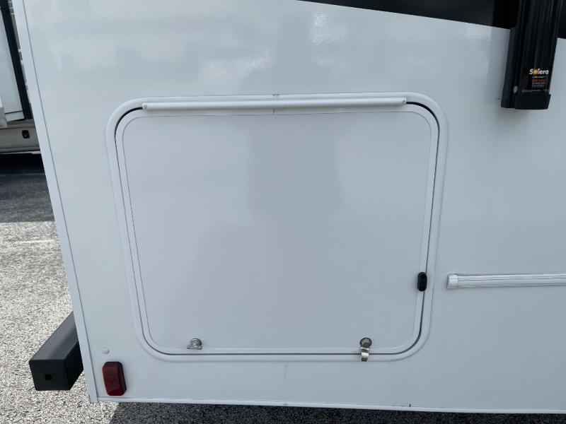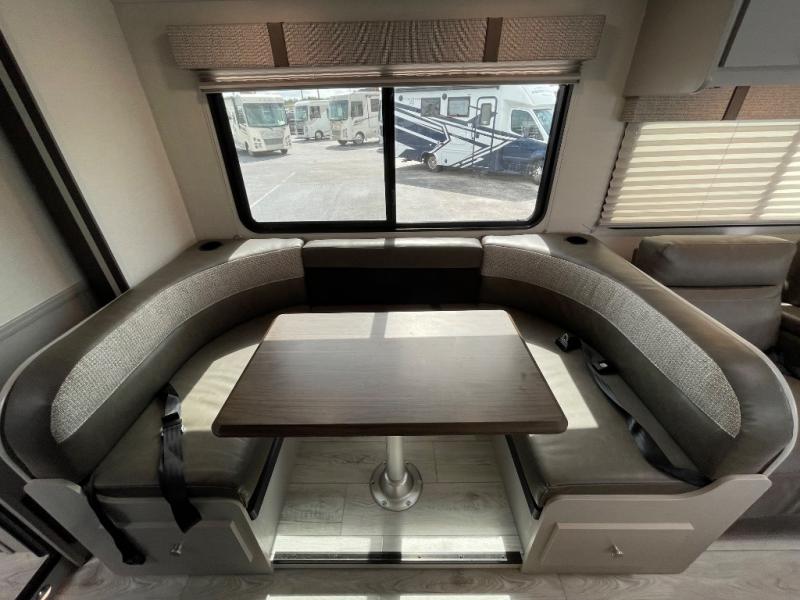 Perfect indoor and outdoor spaces define this great motorhome! Inside you’ll feel right at home with a spacious living area. The sofa faces the TV which is on a lift so can be tucked away out of sight when you aren’t watching. The U-dinette offers even more space for the whole family to enjoy meals cooked in the kitchen. A mid-coach bath can be used by two people at once as the shower is across the hall from the toilet/sink room. A rear bedroom with queen bed and roomy wardrobes lets you bring many changes of clothes. Step outside under the power patio awning with LED light, or add on the optional camp kitchen so you can cook under the open sky. There is even an optional outside entertainment center if you enjoy watching the big game outdoors! This model also includes the CRV Supersprings Ride with heavy duty stabilizer bars, chassis electronic stability control, SumoSprings front shock absorbers, and more!