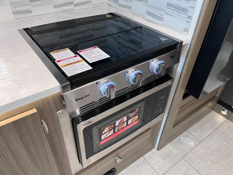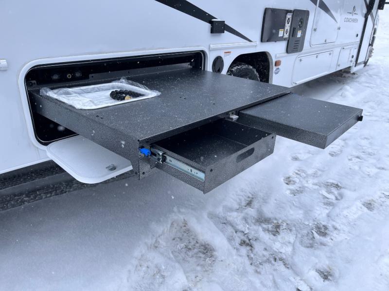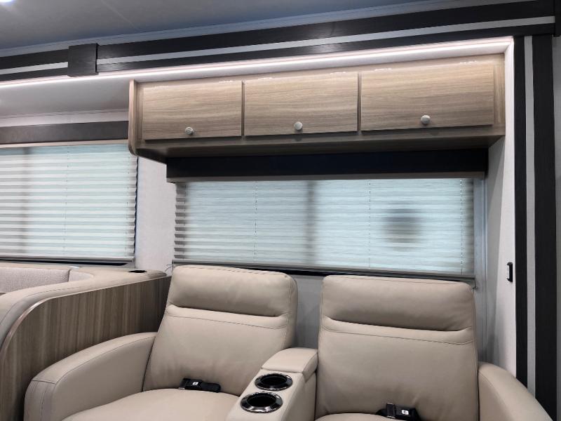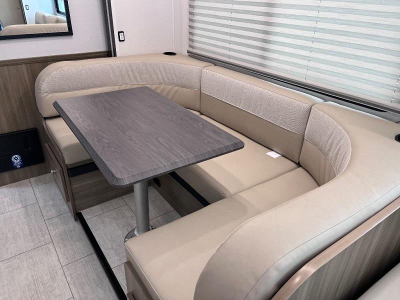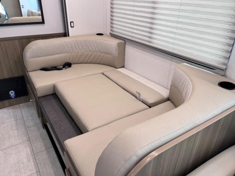 Perfect indoor and outdoor spaces define this great motorhome! Inside you’ll feel right at home with a spacious living area. The sofa faces the TV which is on a lift so can be tucked away out of sight when you aren’t watching. The U-dinette offers even more space for the whole family to enjoy meals cooked in the kitchen. A mid-coach bath can be used by two people at once as the shower is across the hall from the toilet/sink room. A rear bedroom with queen bed and roomy wardrobes lets you bring many changes of clothes. Step outside under the power patio awning with LED light, or add on the optional camp kitchen so you can cook under the open sky. There is even an optional outside entertainment center if you enjoy watching the big game outdoors! This model also includes the CRV Supersprings Ride with heavy duty stabilizer bars, chassis electronic stability control, SumoSprings front shock absorbers, and more!