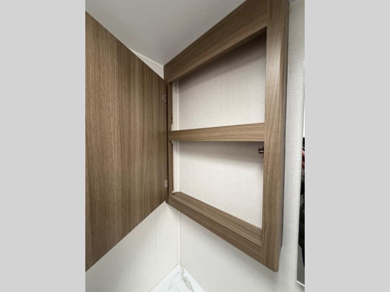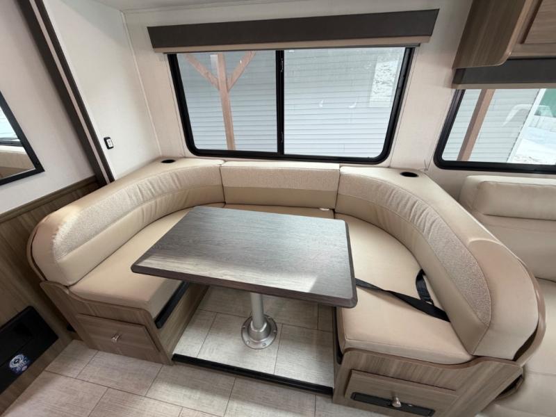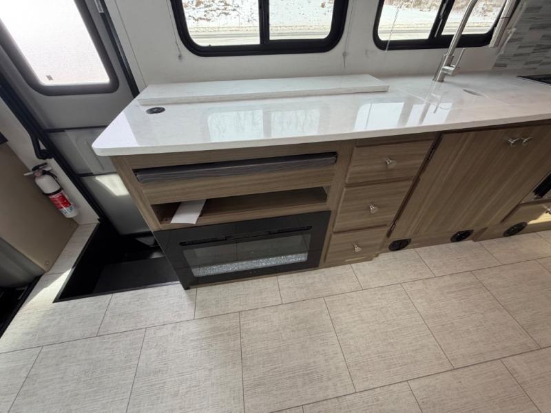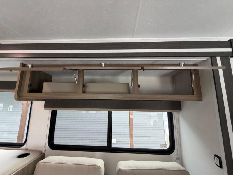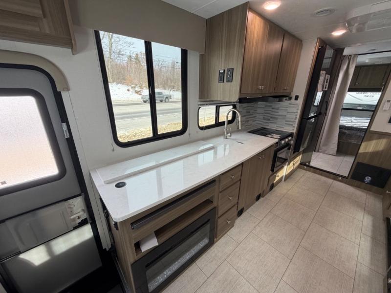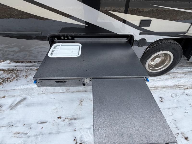 Perfect indoor and outdoor spaces define this great motorhome! Inside you’ll feel right at home with a spacious living area. The sofa faces the TV which is on a lift so can be tucked away out of sight when you aren’t watching. The U-dinette offers even more space for the whole family to enjoy meals cooked in the kitchen. A mid-coach bath can be used by two people at once as the shower is across the hall from the toilet/sink room. A rear bedroom with queen bed and roomy wardrobes lets you bring many changes of clothes. Step outside under the power patio awning with LED light, or add on the optional camp kitchen so you can cook under the open sky. There is even an optional outside entertainment center if you enjoy watching the big game outdoors! This model also includes the CRV Supersprings Ride with heavy duty stabilizer bars, chassis electronic stability control, SumoSprings front shock absorbers, and more!