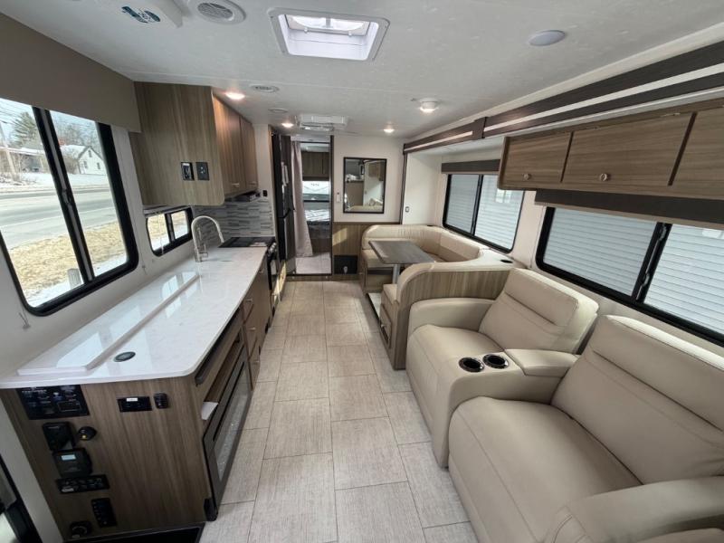 The Freelander Class C gas motorhome by Coachmen is a wonderful choice for anyone looking to get out on the road. A wide variety of floorplans and features offers something for everyone. The Azdel composite sidewalls and seamless one-piece roof membrane provide a solid structure to enjoy all your trips. Conveniences like storage above entrance door with an HDMI and charge station and reclining cockpit seats are standard, along with a rear color backup camera, a premium showerhead and faucet, and one-piece thermofoil countertops. The mandatory Explorer Package includes an exterior shower to rinse off before entering inside and an on-demand tankless water heater for hot water fast. Come find your favorite one today!
