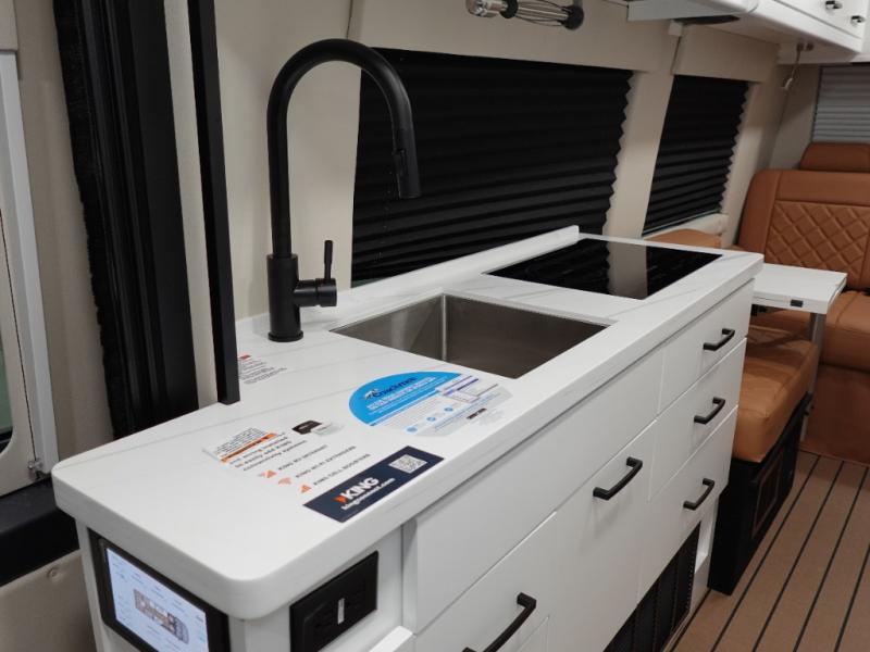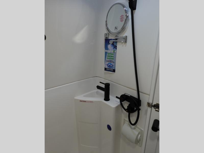 Pack your bags and load up into this motorhome for a fun vacation! The motorized rear sofa lays flat at the push of a button and can be combined with the two jump seats to create a sleeping area for a good night's rest. The wardrobe provides enough hanging and drawer storage to organize your items. Start your mornings off right by grabbing some eggs from the refrigerator with pull-out freezer drawer then fry them up on the two-burner cooktop. Now that your belly is full, you can get cleaned up in the wet bath with sink and shower that has an Oxygenics Fury handheld shower head with on/off switch. Stay entertained even when it's raining with the 24" LED Smart TV!