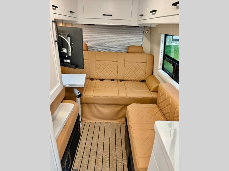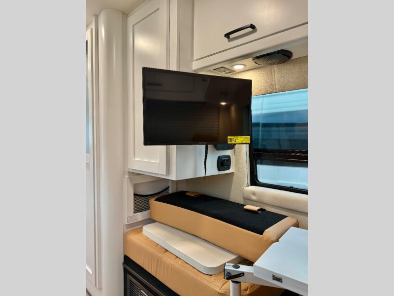 Take in the beauty of the season in comfort with this motorhome! With four captain's chairs, everyone will have a comfortable place to sit while you travel and you could even get some work done with the removable table in between them all. The galley has everything you need to prepare home cooked meals like a single burner cooktop and a refrigerator. Stay squeaky clean with the wet bath including a sink and shower that has an Oxygenics Fury handheld shower head with on/off switch. Above one of the jump seats there is an overhead wardrobe and a 24" LED Smart TV. The rear sofa can fold out to create a sleeping area in combination with the two jump seats so you can have a good night's rest each night! Available with optional AWD chassis. See dealer for details.