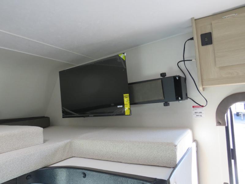 You will feel so lucky traveling down the highway in this Leprechaun Class C gas motorhome! The spacious J-lounge can be used for dining, sleeping, or game night, and the kids will love the bunk over cab that includes a swing-arm TV! The queen bed will provide a great night's rest, and there are overhead cabinets plus a wardrobe to keep your things tidy. You will also be able to offer a full bathroom to anyone that stops by.