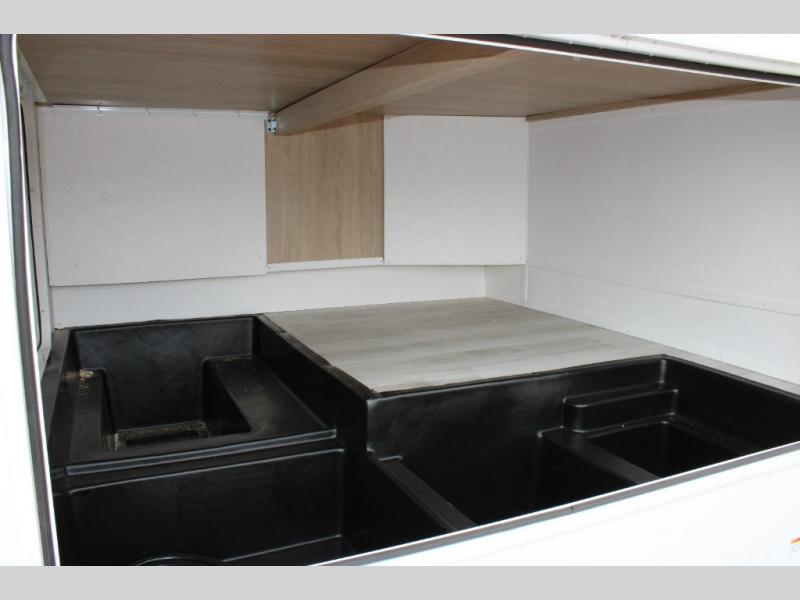 With the Leprechaun, the adventure doesn’t end at the door. Set up under your power awning, fire up the grill, and let the good times roll. You’ll have plenty of basement storage for camp chairs, hiking gear, and picnic essentials, so every day can be a new outdoor experience. Plus, the swing-arm cabover TV can pivot for movie nights no matter where you’re seated.