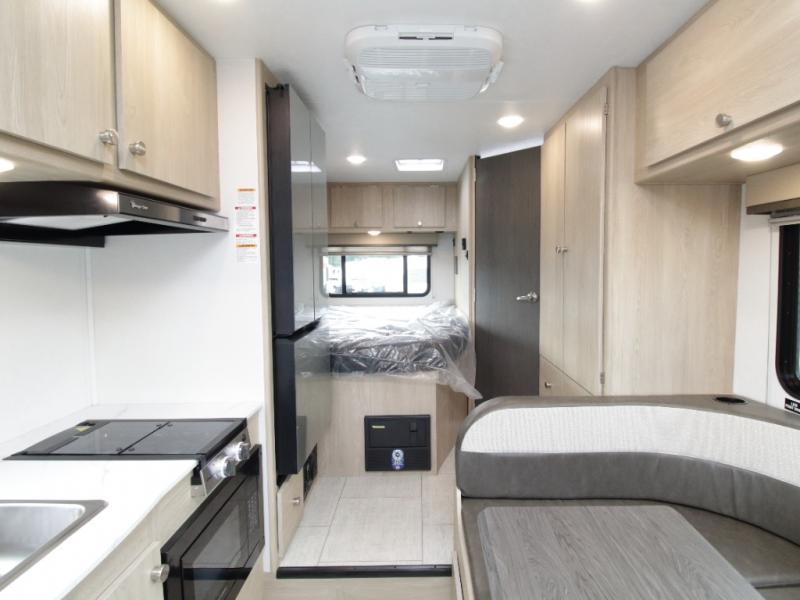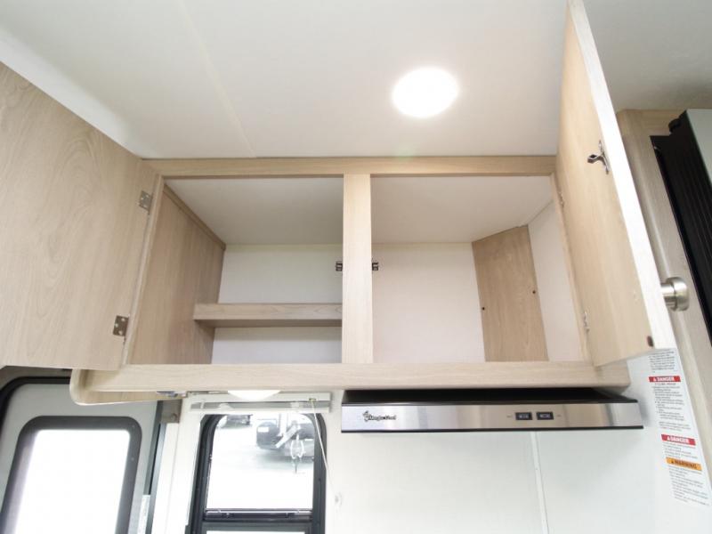 Private Rear Queen Bed – Enjoy restful nights with ample storage space in overhead cabinets and a wardrobe.