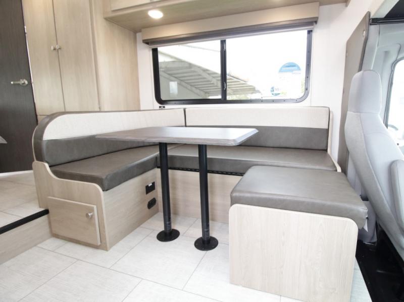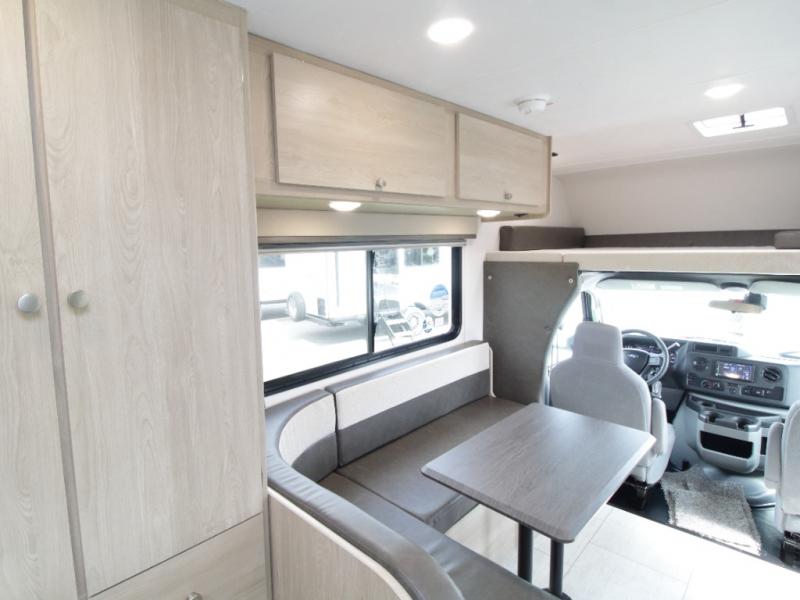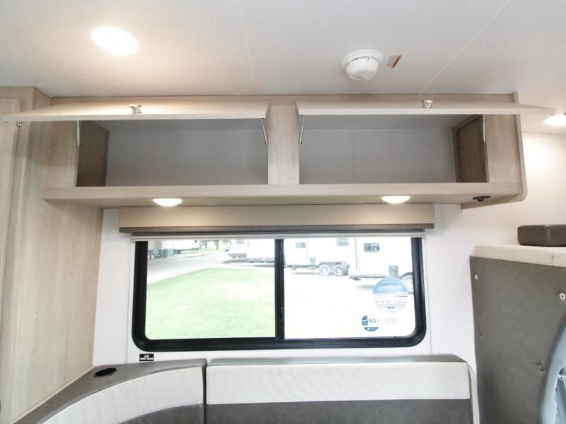 The Coachmen Leprechaun Class C combines durability and style with composite sidewall construction, a seamless one-piece roof, and cabover floor reinforcement for long-lasting performance. Inside, premium vinyl flooring, pleated night shades, and USB charging ports enhance your living experience.
