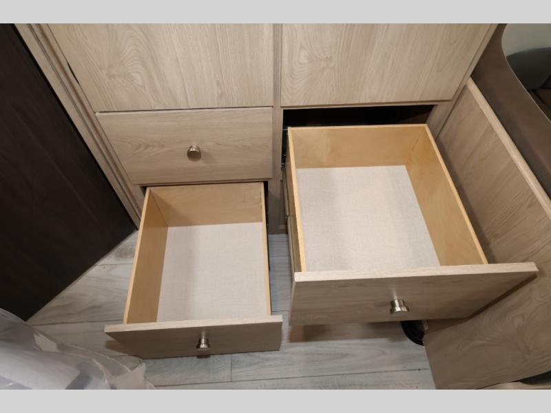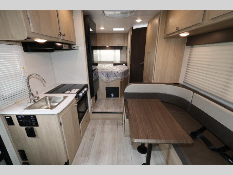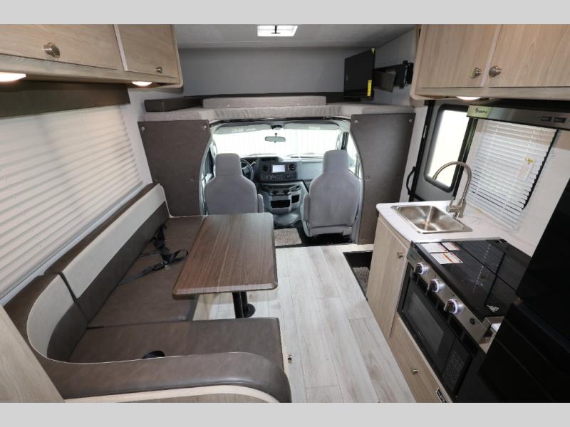 With each Leprechaun Class C gas motorhome by Coachmen you will enjoy "better" interior appointments, like the residential-sized beds, on-demand tankless water heater, and 15,000 BTU A/C. A 7" touchscreen dash radio with CarPlay and a backup monitor will let you easily navigate the open road like pro. The Leprechaun is constructed with composite sidewall and cabover floor construction plus a seamless one-piece roof material for a durable motorhome made to last.