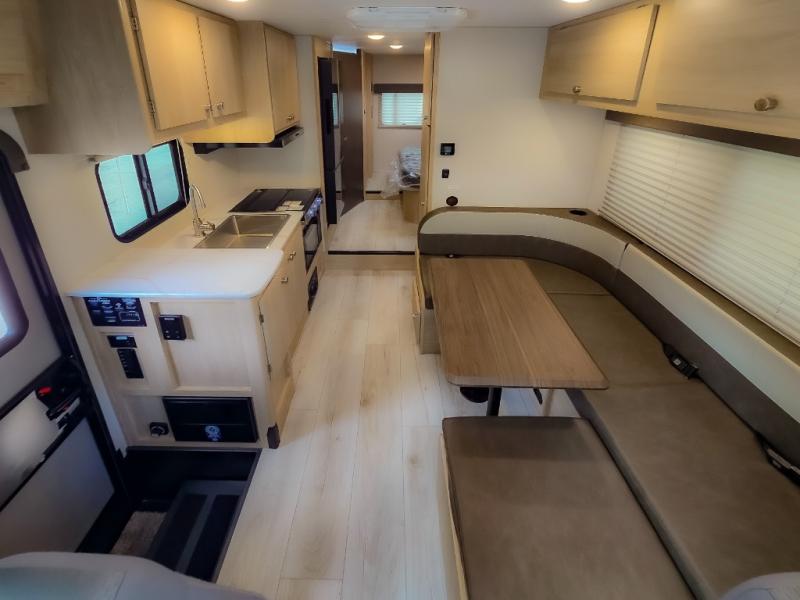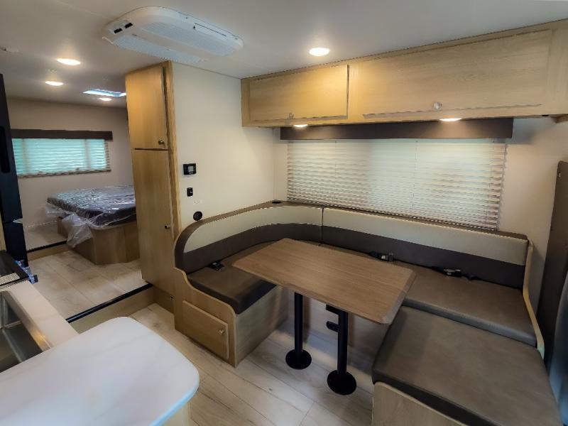 With each Leprechaun Class C gas motorhome by Coachmen you will enjoy "better" interior appointments, like the residential-sized beds, on-demand tankless water heater, and 15,000 BTU A/C. A dash radio and a backup monitor will let you easily navigate the open road like pro. There are also pleated night shades inside, along with premium vinyl flooring, a shower skylight, and USB charging ports to name a few comforts and conveniences. The Leprechaun is constructed with composite sidewall and cabover floor construction plus a seamless one-piece roof material for a durable motorhome made to last.