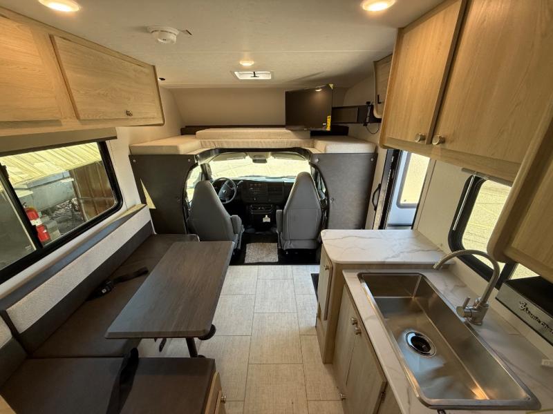 With each Leprechaun Class C gas motorhome by Coachmen you will enjoy "better" interior appointments, like the residential-sized beds, on-demand tankless water heater, and 15,000 BTU A/C. A dash radio and a backup monitor will let you easily navigate the open road like pro. There are also pleated night shades inside, along with premium vinyl flooring, a shower skylight, and USB charging ports to name a few comforts and conveniences. The Leprechaun is constructed with composite sidewall and cabover floor construction plus a seamless one-piece roof material for a durable motorhome made to last.