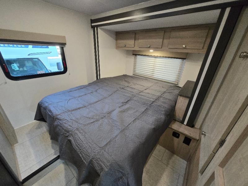 With each Leprechaun Class C gas motorhome by Coachmen you will enjoy "better" interior appointments, like the residential-sized beds, on-demand tankless water heater, and 15,000 BTU A/C. A dash radio and a backup monitor will let you easily navigate the open road like pro. There are also pleated night shades inside, along with premium vinyl flooring, a shower skylight, and USB charging ports to name a few comforts and conveniences. The Leprechaun is constructed with composite sidewall and cabover floor construction plus a seamless one-piece roof material for a durable motorhome made to last.